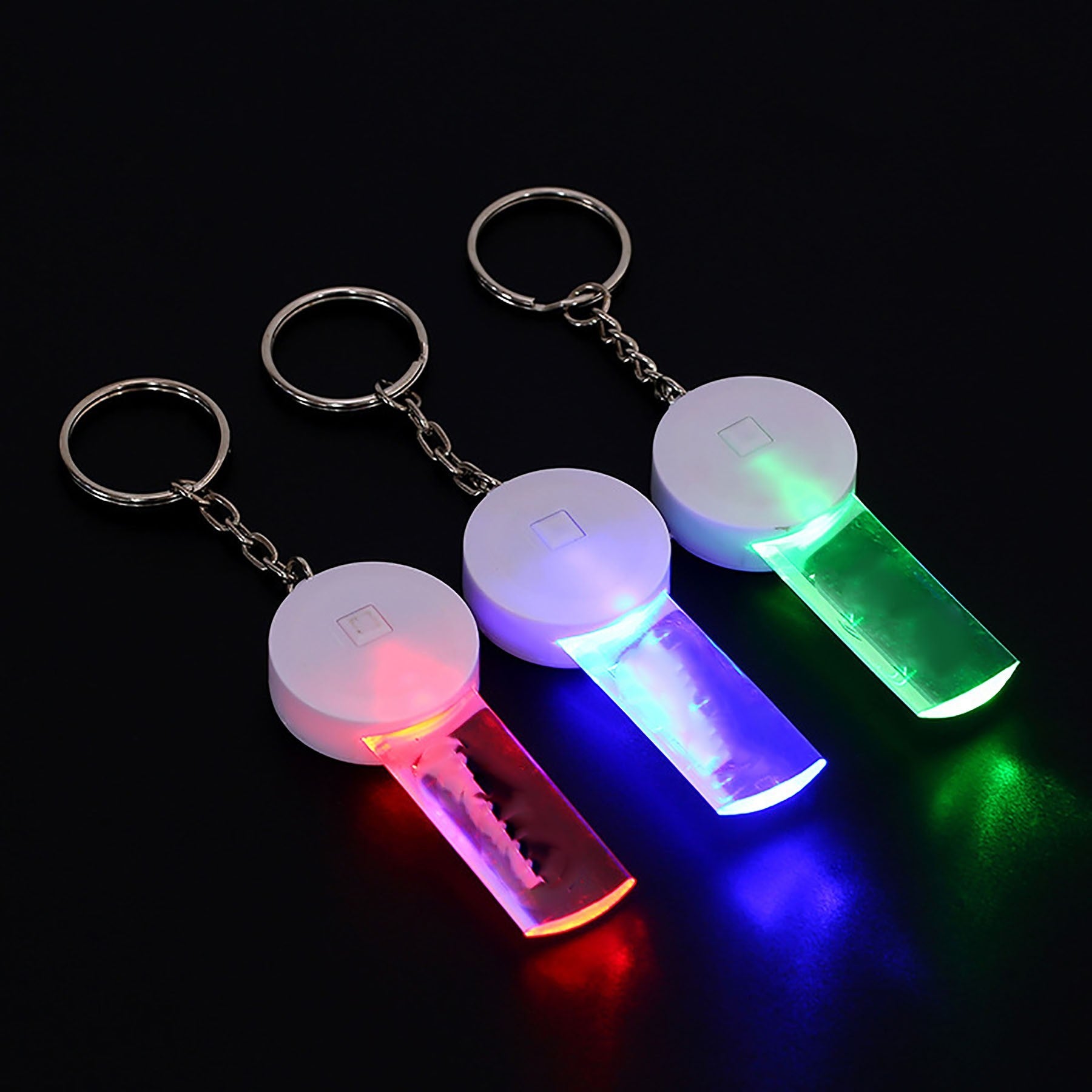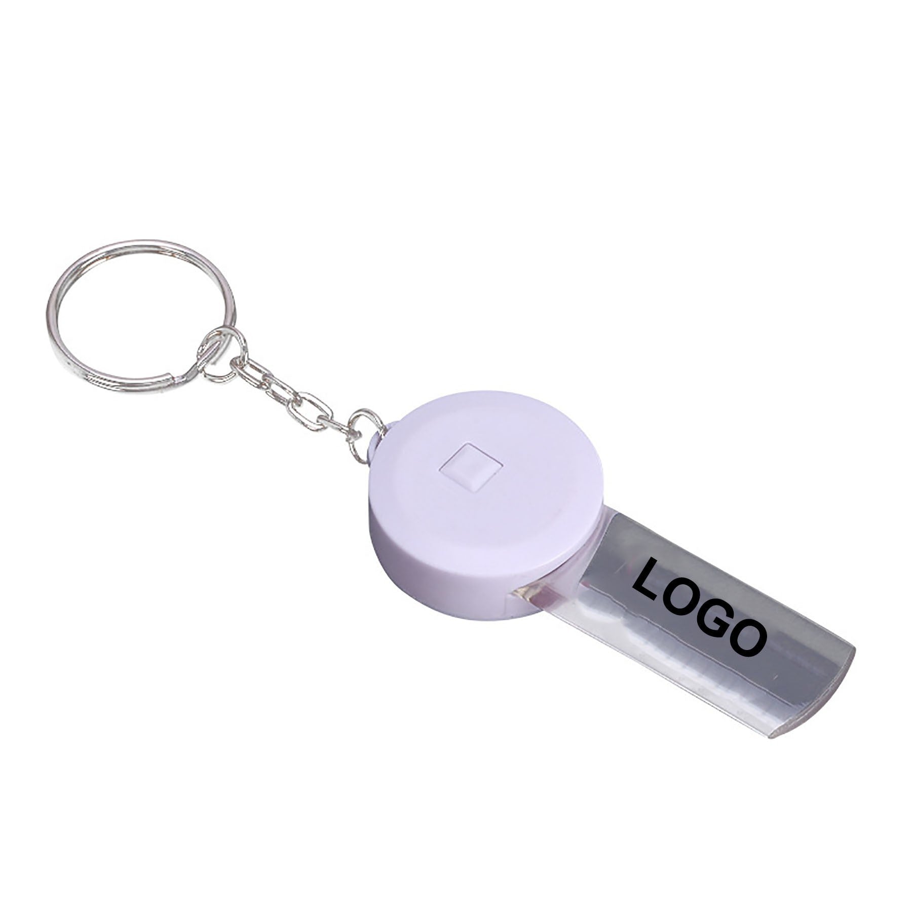 Promotional success comes in a flash when you hand out this great LED flashlight as a marketing gift for your next event! Made of aluminum alloy, this miniature LED flashlight comes with installed alkaline button batteries, a protective tab to prevent an early discharge and a color-matching carabiner to use on a belt loop or bag attachment. Use the LED as a practical flashlight, party favor or travel light. 0.59′ L x 2.2′ W