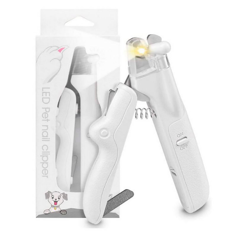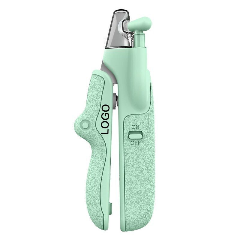 High bright LED lights make dog nail clippers easier to find bloodlines in cat nails. This design protects your pet from hurting when doing the trimming. Stainless steel cutter head, easy to cut, half-moon design, no nail splitting, fit the shape of pet nails. Transparent baffle prevents splashes, detachable and more convenient for cleaning. Three LR44 batteries are replaceable for up to a year of normal use. ABS assured material, smooth anti-slip, streamline shape feel comfortable to hold, easy to grasp, anti-slip easy to cut nail. We can customize the logo as your request. 5 3/4′ L x 1 3/4′ W x 1′ H