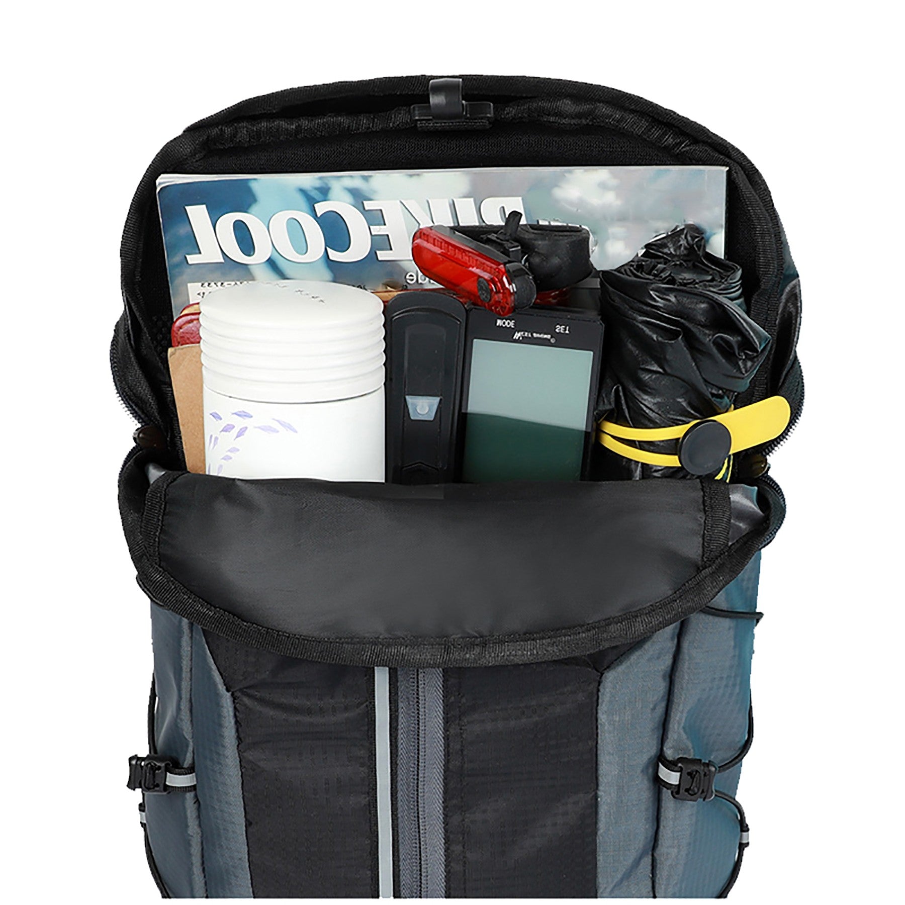 This spacious bag is perfect for short trips, with durable Oxford fabric that is light and expandable. It has one-touch fasteners for quick access and can store items like shoes and toiletries. The bag a USB charging port for on-the-go convenience and features an ergonomic design with a chest belt for added stability. Ideal for climbing, traveling, hiking, and touring. 12.2′ L x 21.26′ W x 21.26′ H