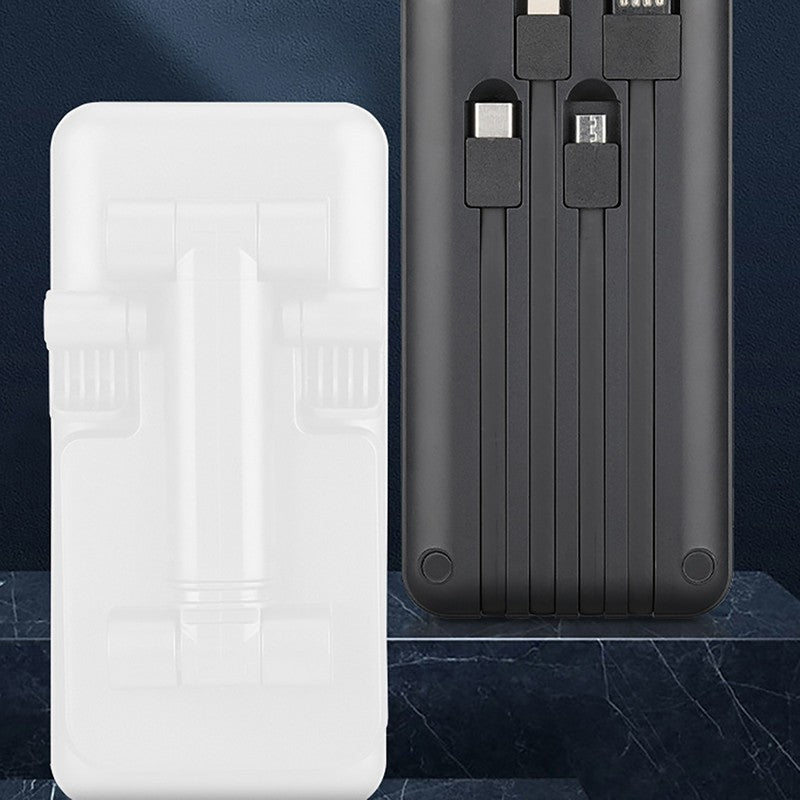 Your essential daily companion! Charge 3 devices simultaneously with 4 cables and a USB output port. Fully charge in 2.5-3 hours with a 2A charger. a cell phone stand for hands-use. Say goodbye to dead batteries during live broadcasts and elevate your career! 7.09′ L x 4.72′ W x 4.72′ H