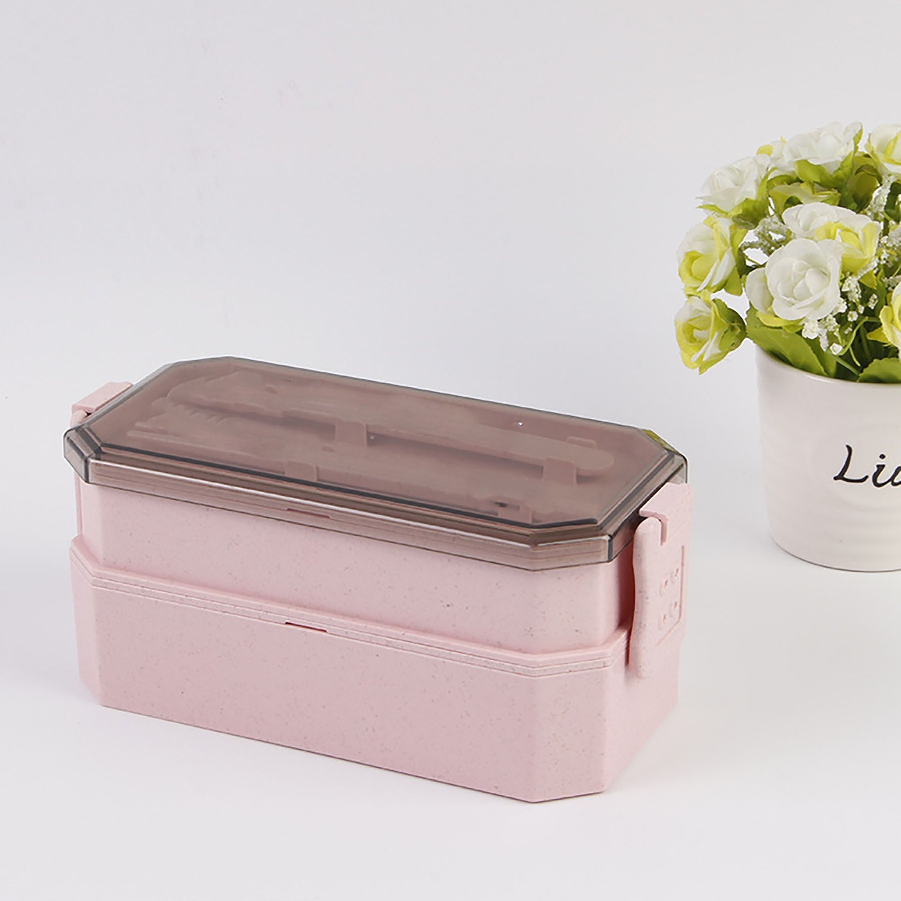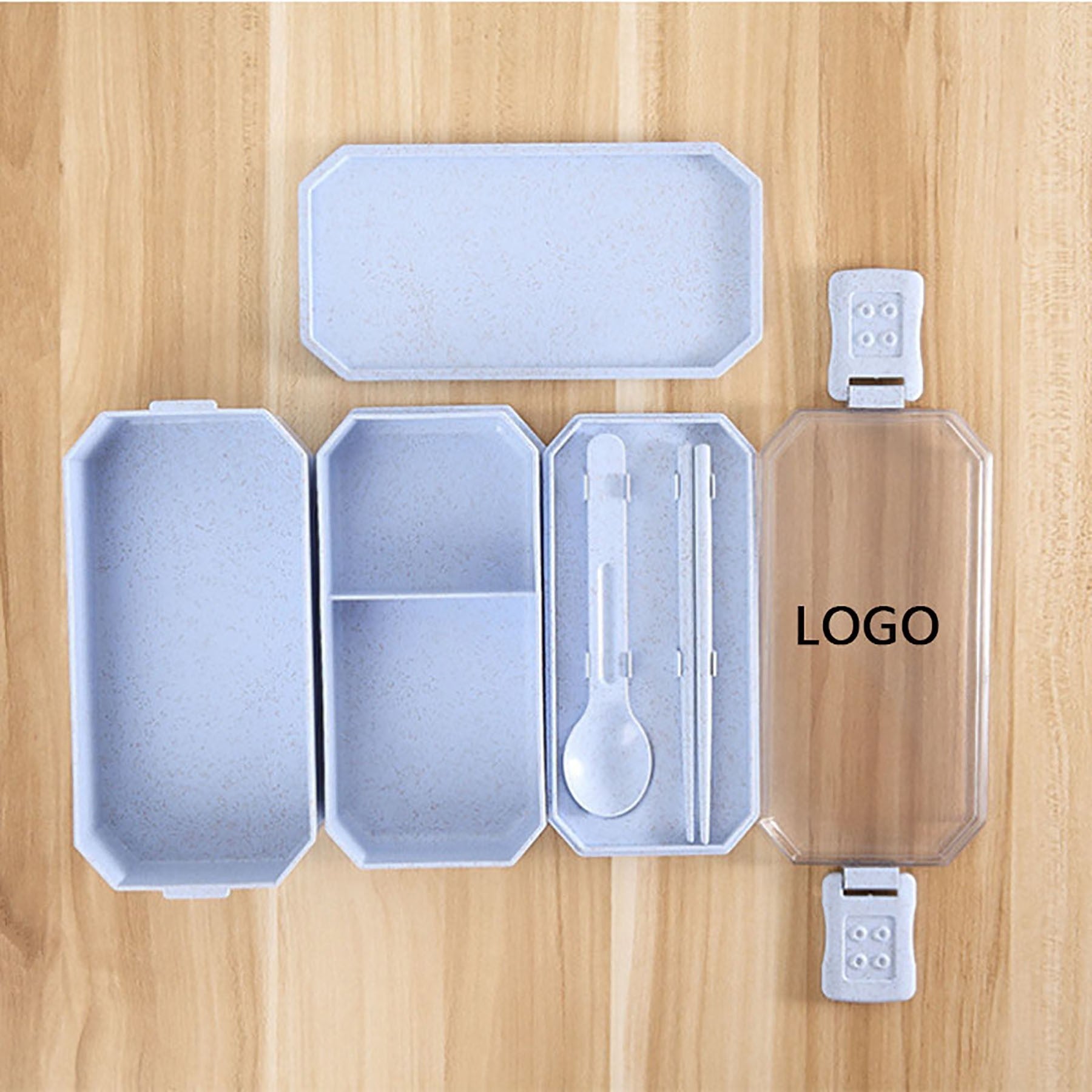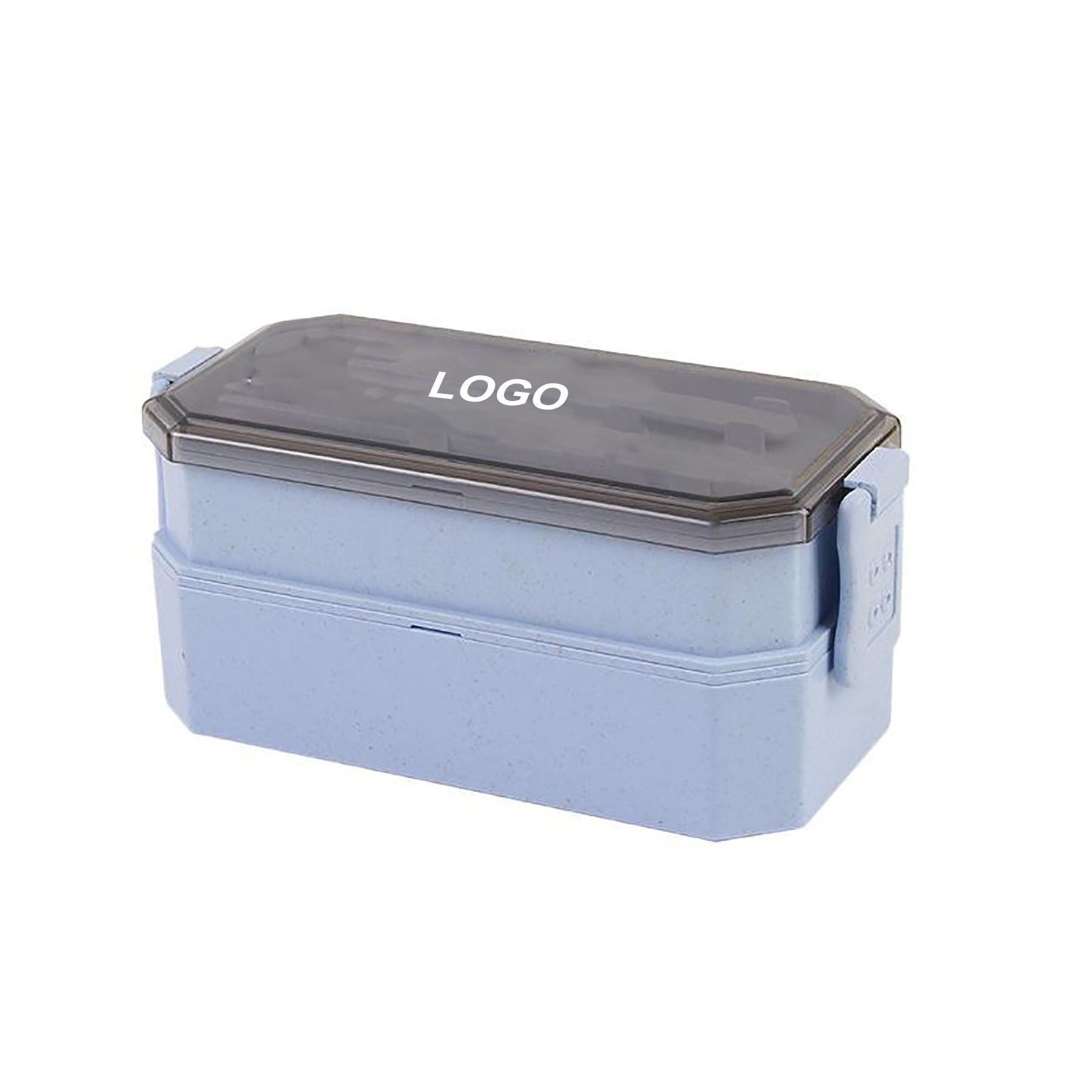 Indulge in eco-friendly dining with our innovative lunch box crafted from durable wheat fiber and topped with a sleek PP cover. Complete with a convenient spoon and chopsticks, this microwave-safe gem features double compartments for easy organization. For added peace of mind, it boasts a double-sided lock for secure closure. Plus, personalize your lunch box with a custom logo on both the side and lid for a touch of uniqueness. 7 7/8″ L x 3 1/2″ W x 3 1/8″ H