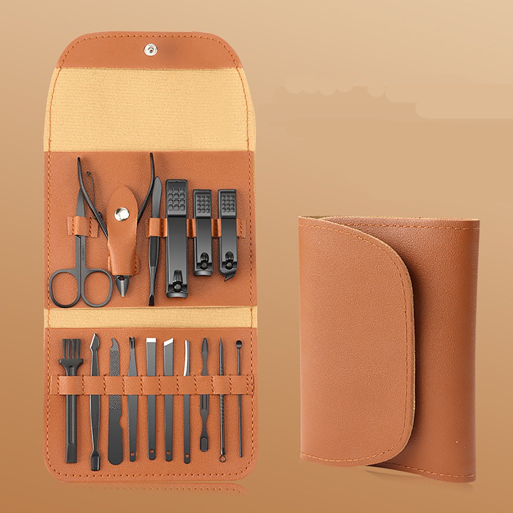 This set contains 16 carbon steel nail clippers for pedicures. The PU jackets can be printed with logos for branding. These products are ideal for daily use and promotions in different industries. 3 7/8″ L x 2 6/8″ W x 3/8″ H