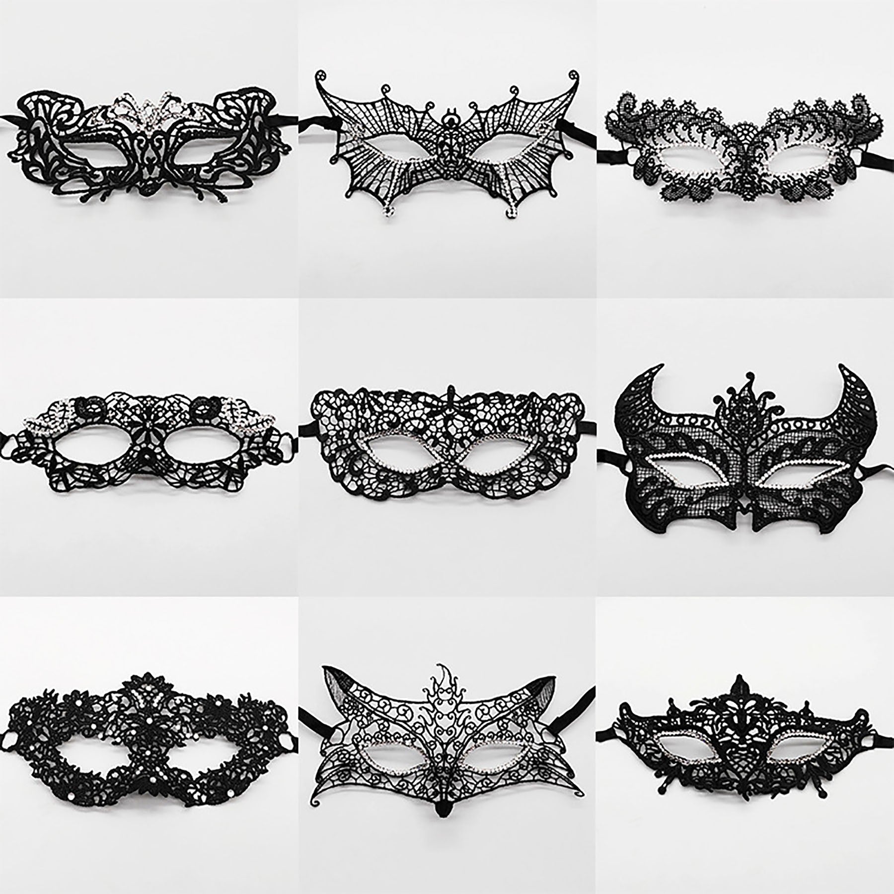 Halloween party black lace stereotypes masks, after shaping and reinforcement treatment.It can be used for dancing party, stage show, carnival, bar, catwalk show, gift and other places.There are also undefined styles.Multi – color optional, welcome to consult the purchase, affordable, fast delivery. 9 1/16″ L x 4 15/16″ W