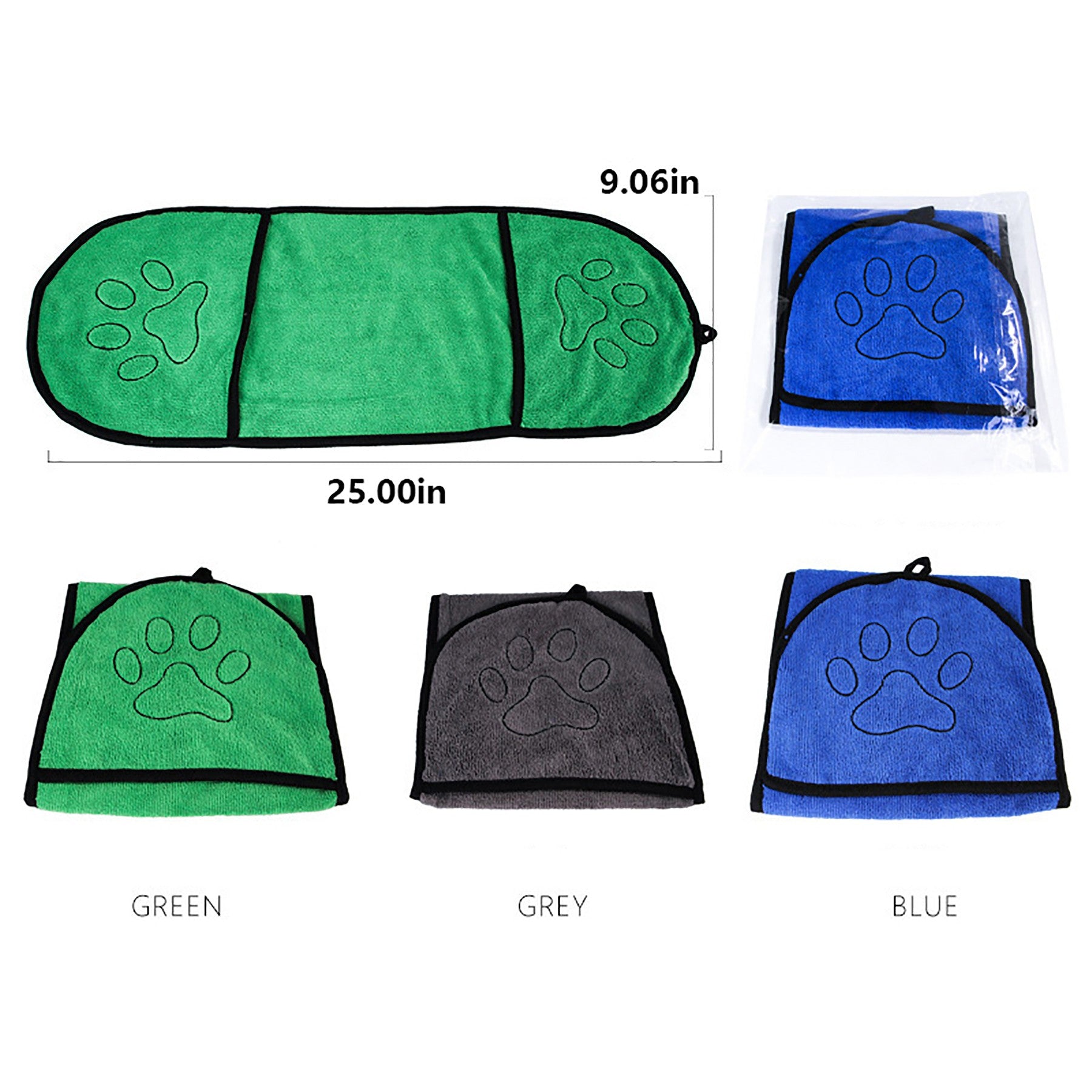 This soft and absorbent pet towel makes drying your furry friend easy. With hand pockets on each side, you can quickly dry your pet with minimal effort. The towel is machine washable and perfect for both cats and dogs. Ideal for use at home, in the car, or anywhere else. 25″ L x 9″ W x 1/8″ H
