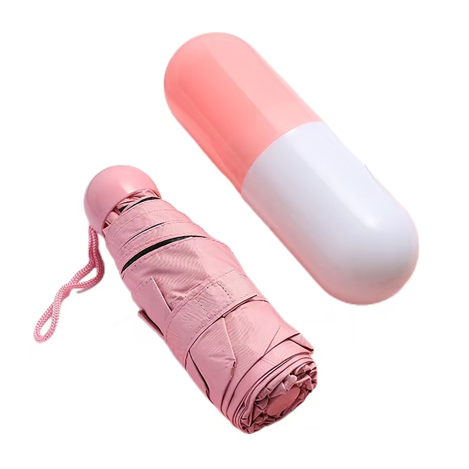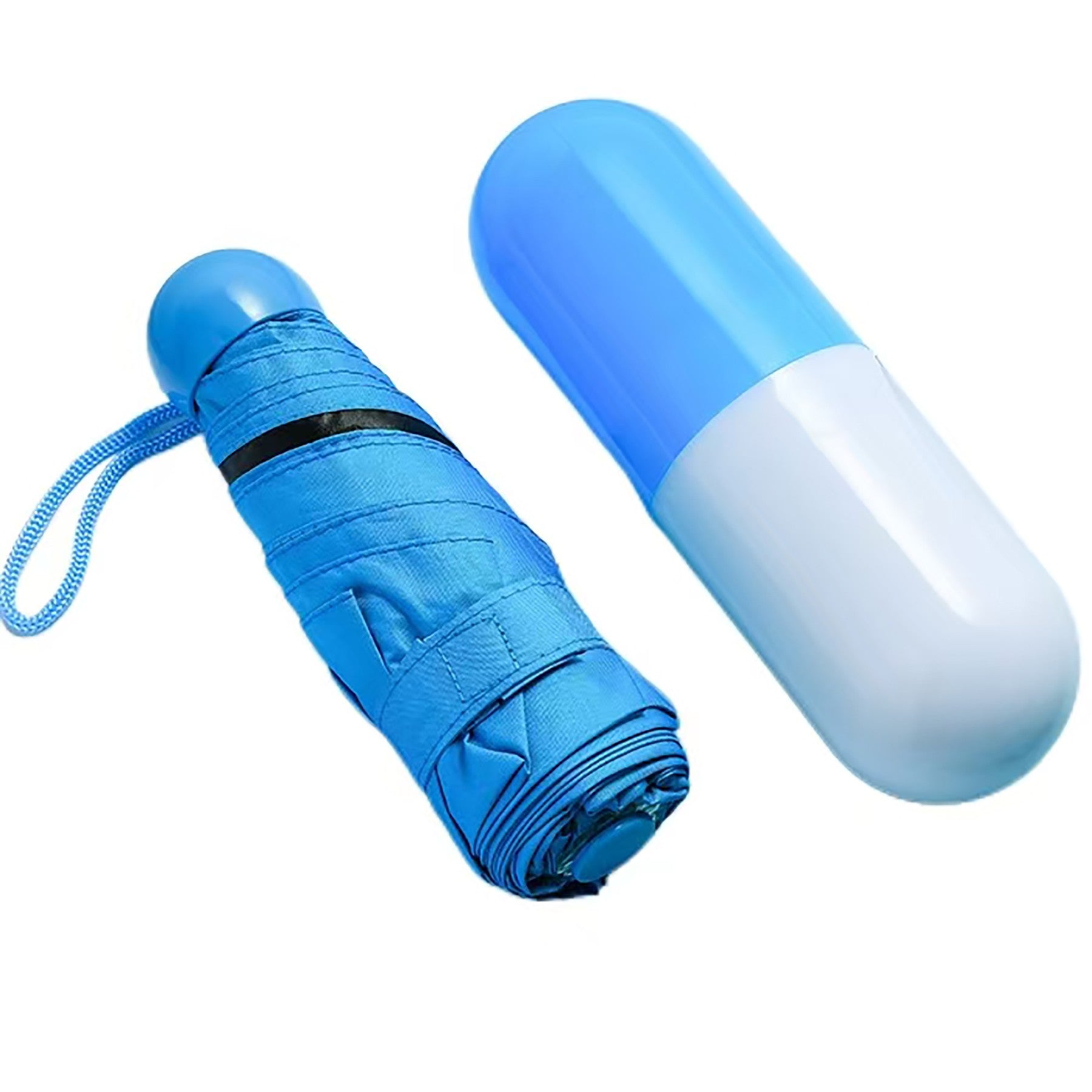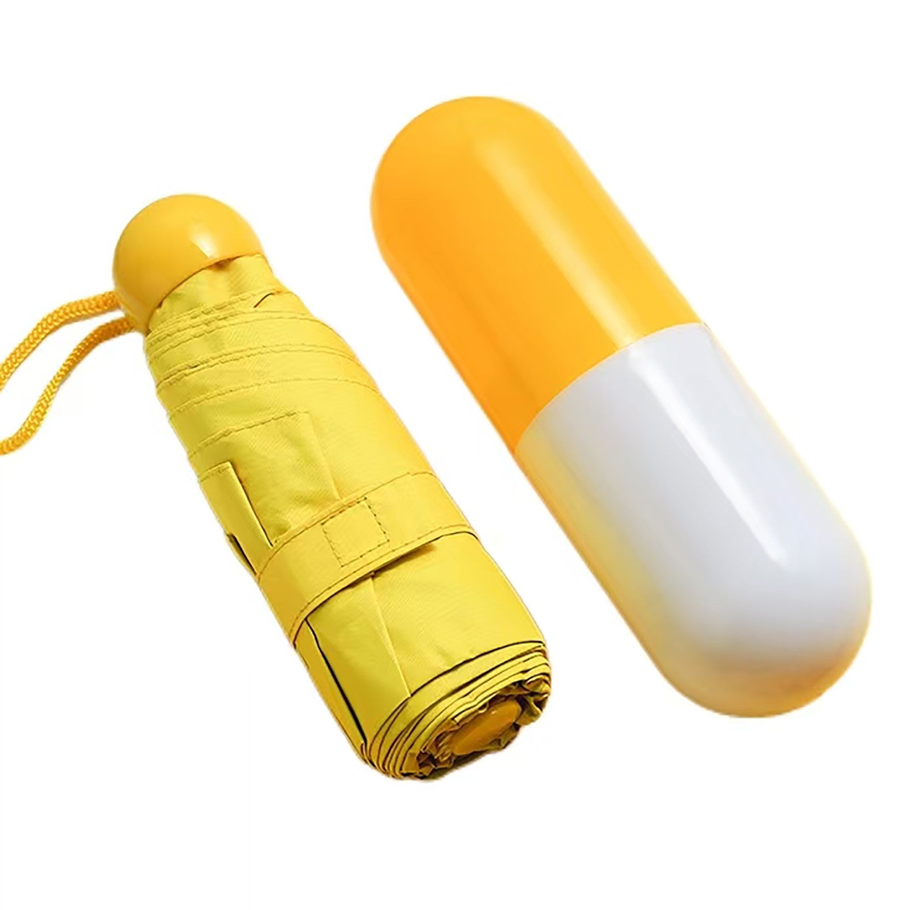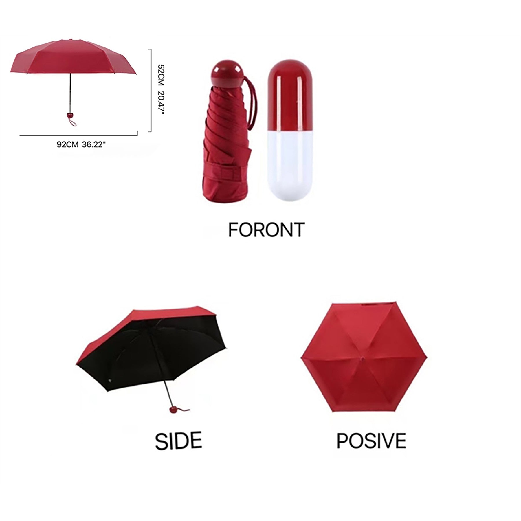 The portable outdoor umbrella is lightweight and easy to carry with a quick-folding buckle strap. It folds to the size of a cell phone and can be stored in a capsule case, providing stylish protection from the sun and rain with UV protection and a steel-reinforced construction. The compact design features a traditional 6-bone fiber frame for greater protection, making it perfect for outdoor use. The waterproof umbrella dries quickly with moisture-wicking material. 37.01′ L x 37.01′ W x 37.01′ H