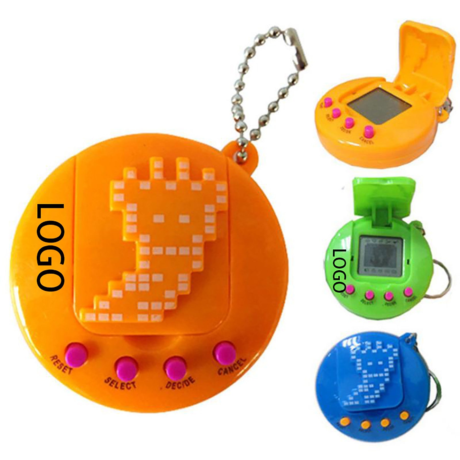 Introducing 49 new electronic pets in plastic and metal, with or without antennas. Available in blue, yellow, red, or green colors. Powered by 2 x 1.5v button batteries. Small size with keychain for on-the-go fun. Educational and entertaining, teaching kids how to care for pets. Order yours today! 2 1/2″ L x 2″ W x 5/7″ H