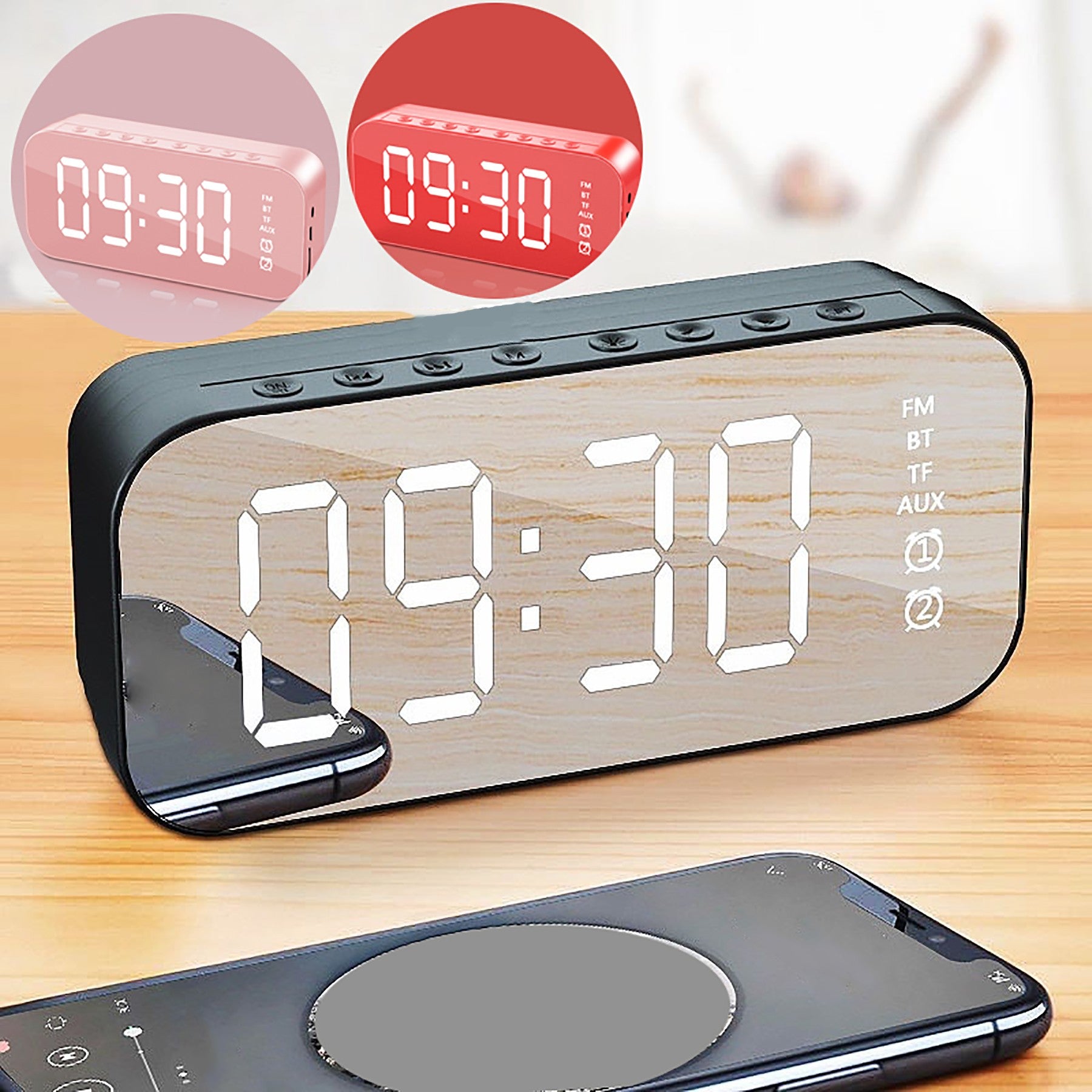 Mirror Dual Alarm Wireless Speaker
