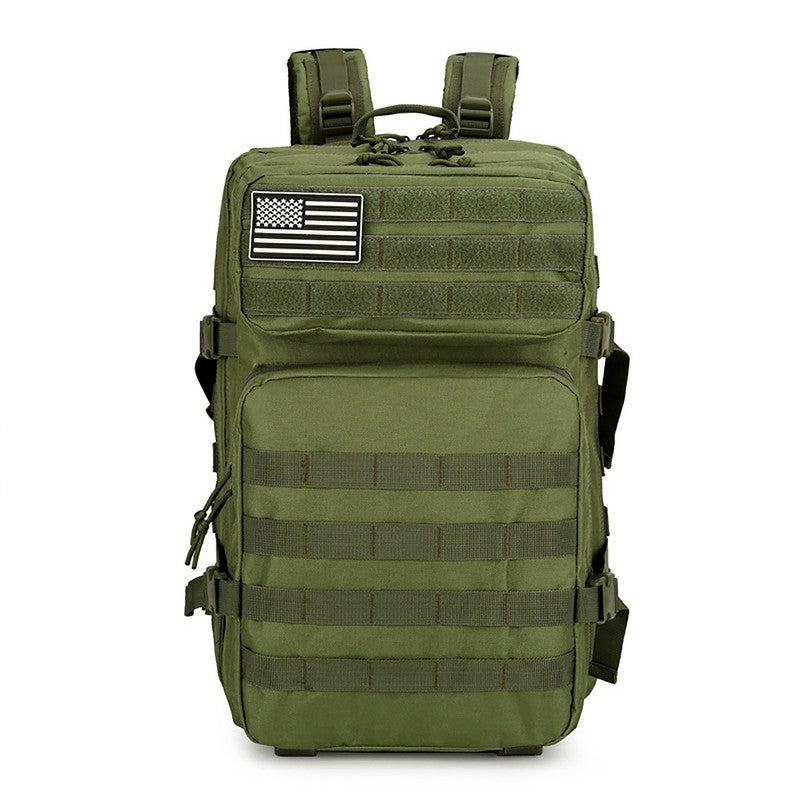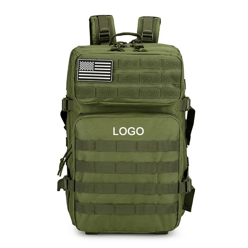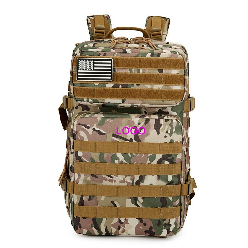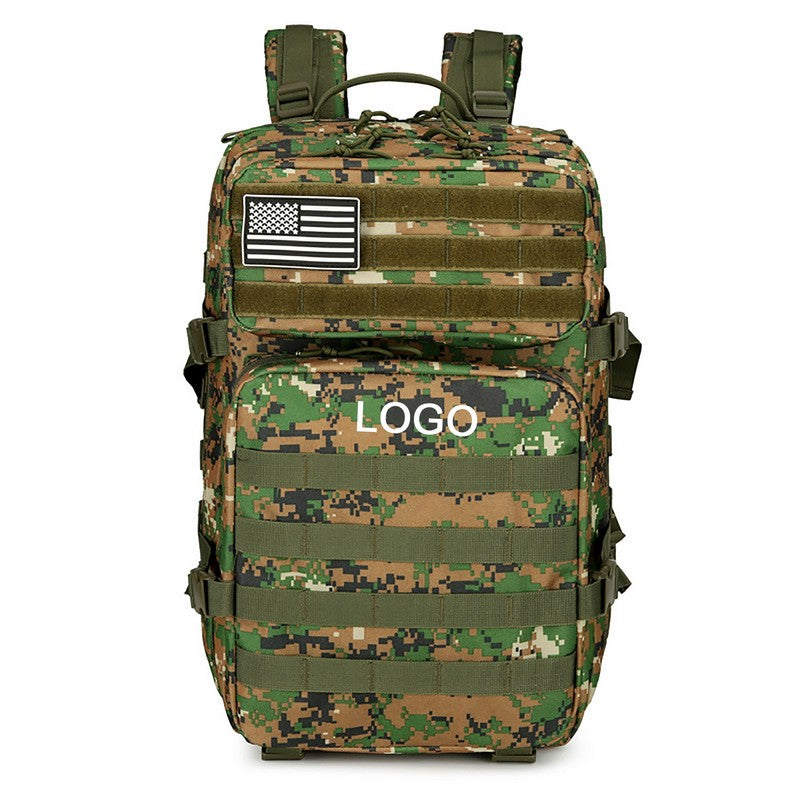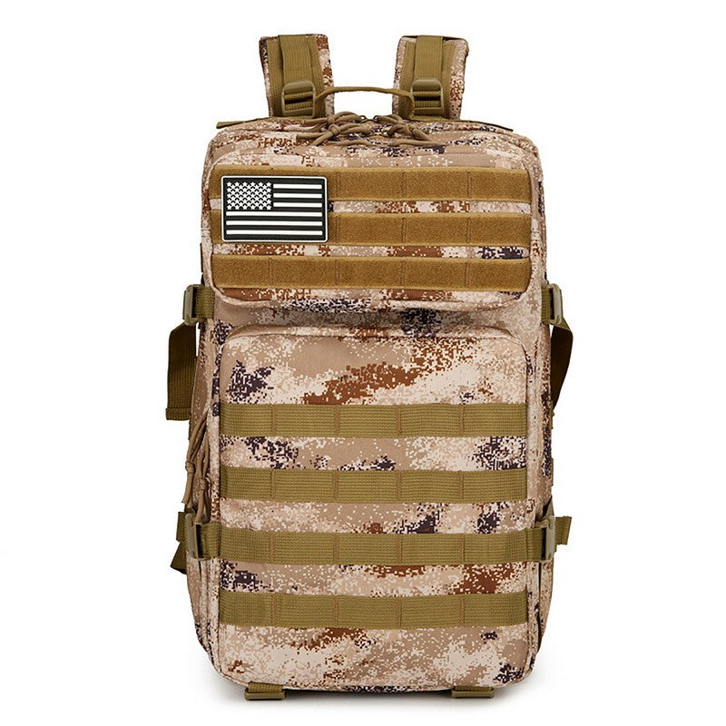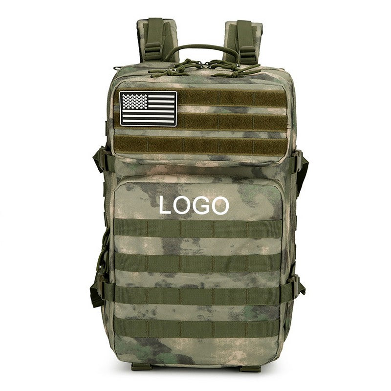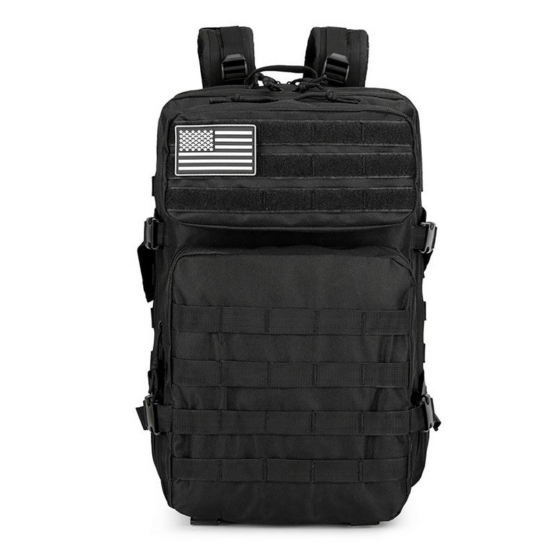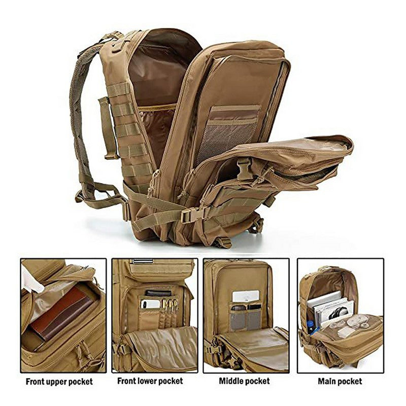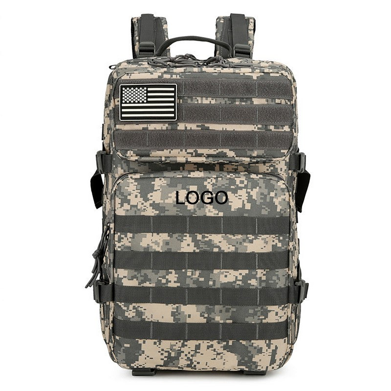 The military backpack is constructed from durable 900 oxford nylon fabric that is water-resistant. It features heavy-duty zippers, utility-style cord pulls, a side and front load compression system, ventilated mesh padding on the back area and shoulder straps for breathability and comfort. The tactical backpack contains a molle system for easy attachment of other equipment such as pockets, water bottle bags, and accessory kits. 20′ L x 12′ W x 12′ H