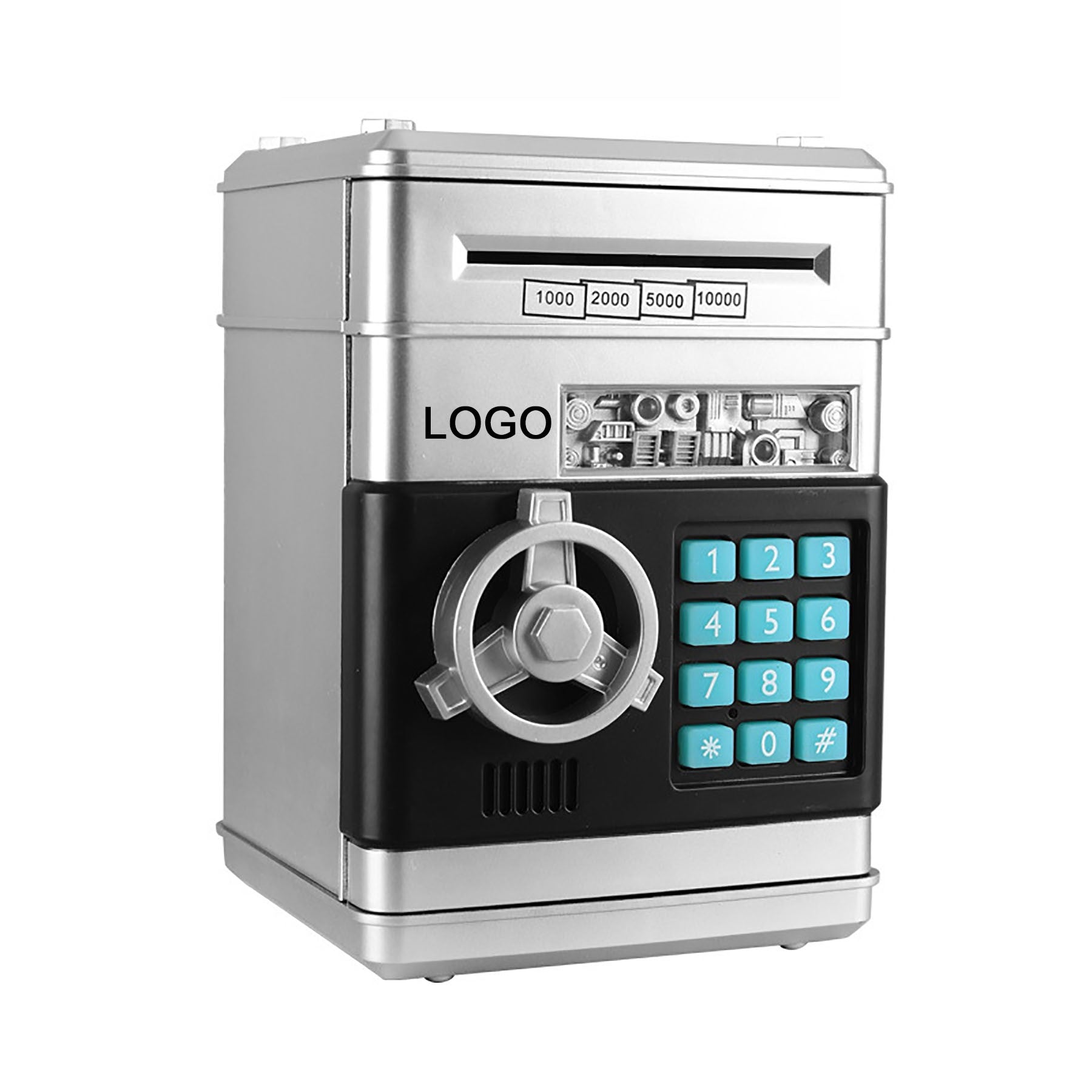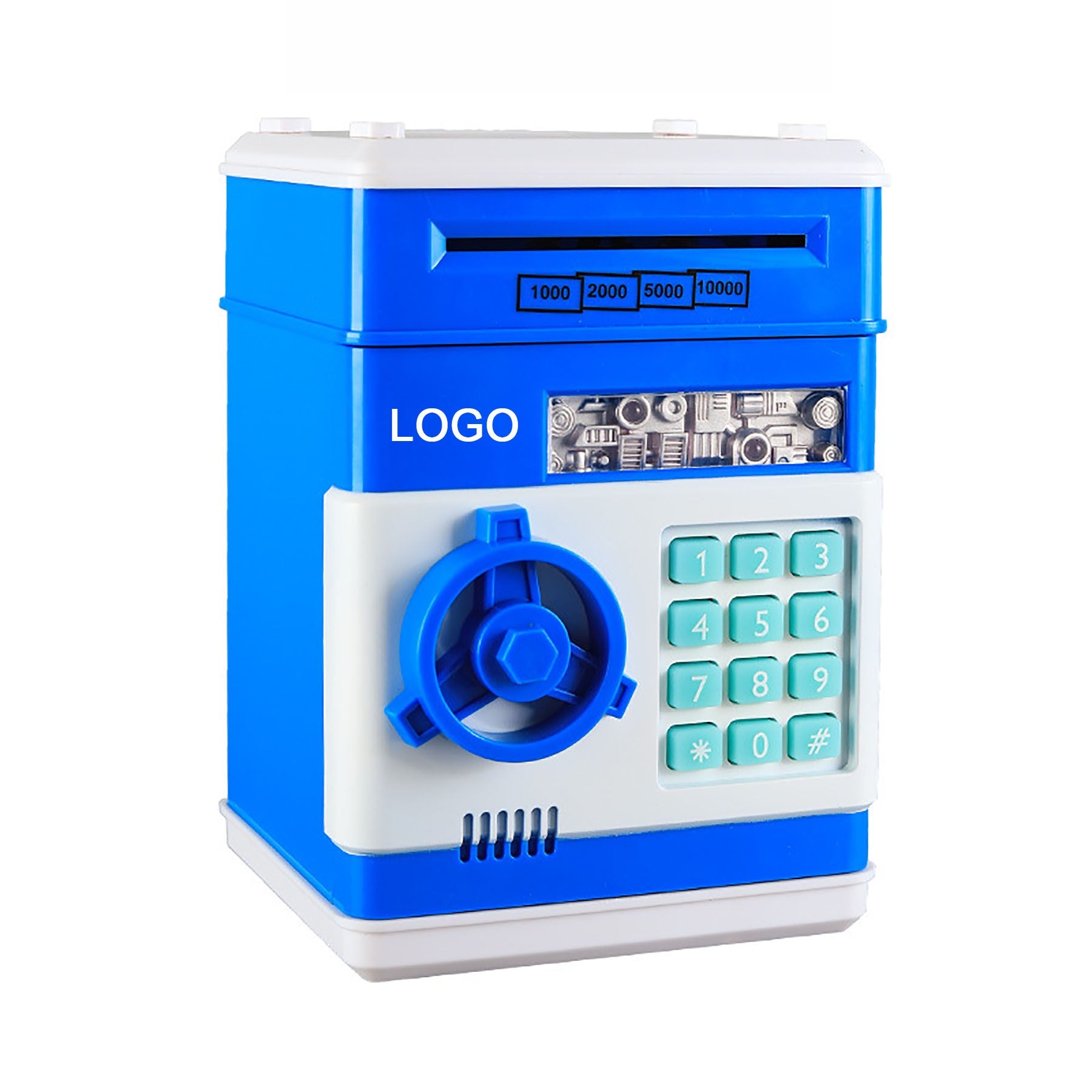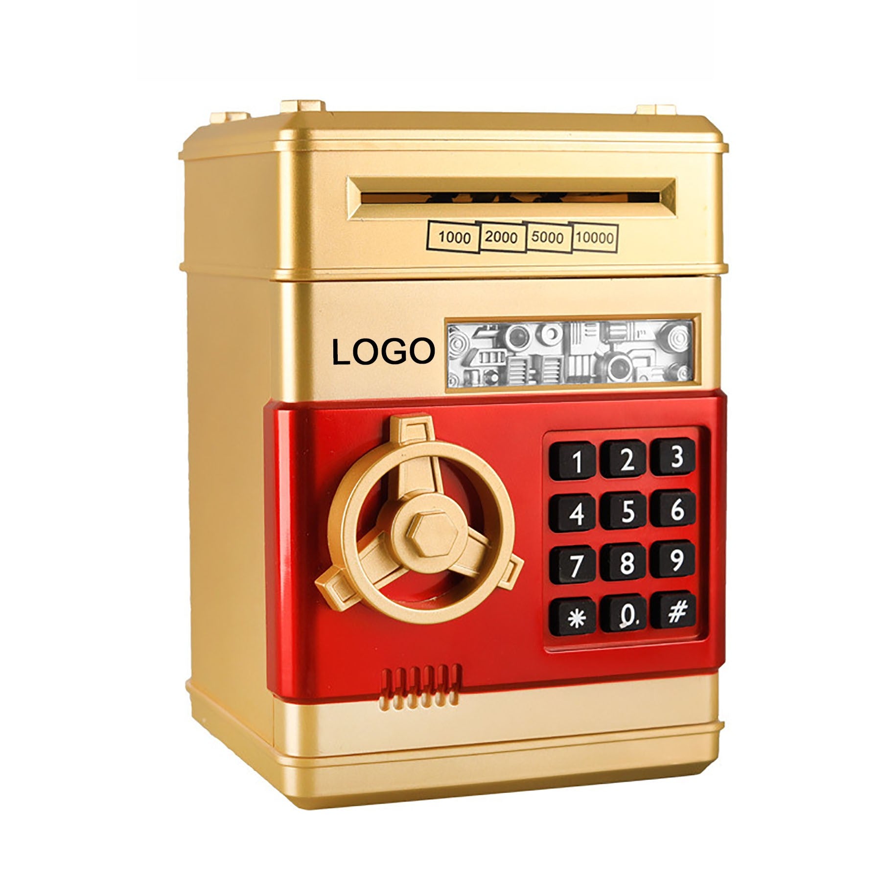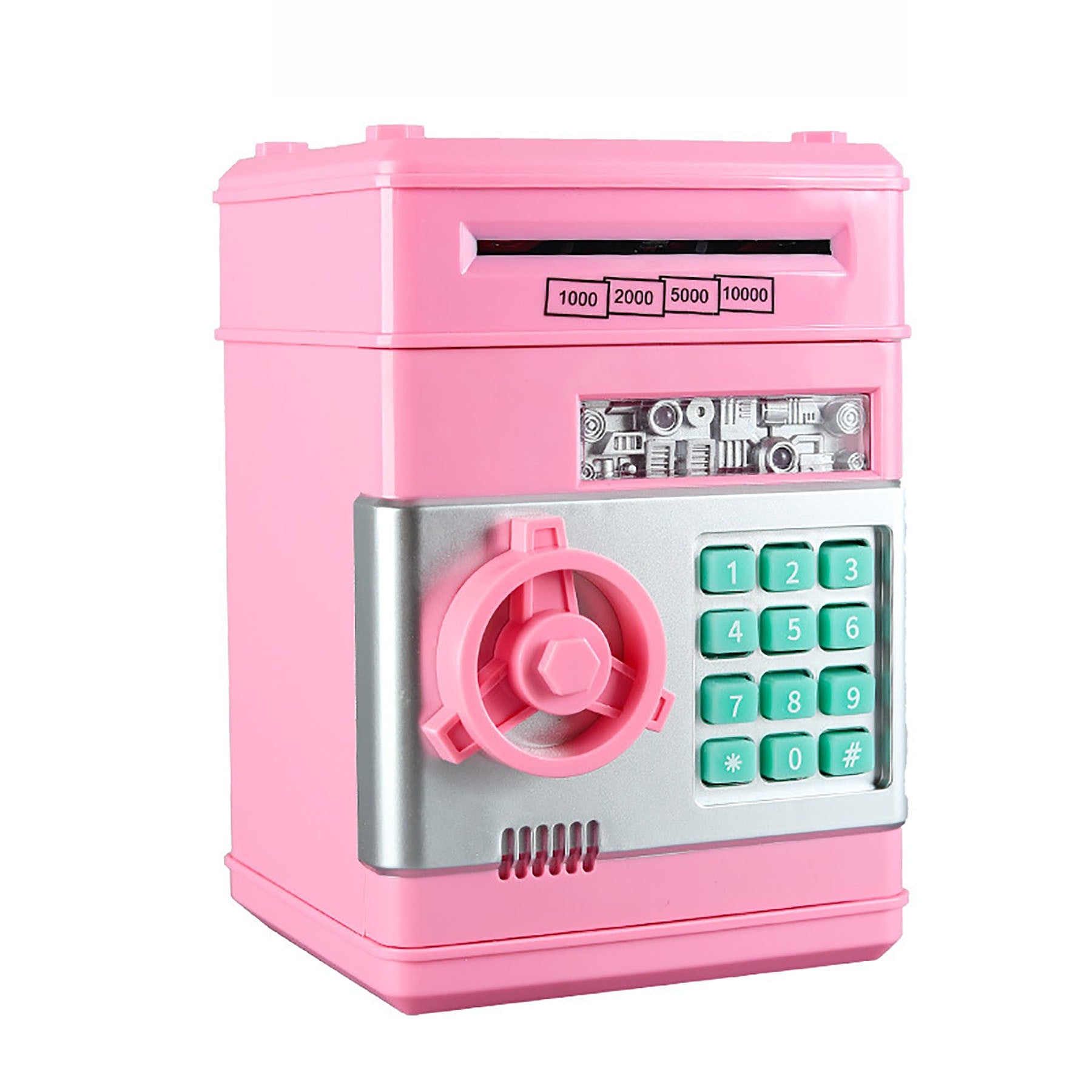 Material: High quality ABS. Safe simulation design. Perfect Christmas gift. Automatic Paper Money Scroll: Roll money into machine automatically. Password Safe Cash Box: Enter 4 digit password to open ATM. Red light and sound if wrong password entered. 5 1/8″ L x 5″ W x 7 3/4″ H