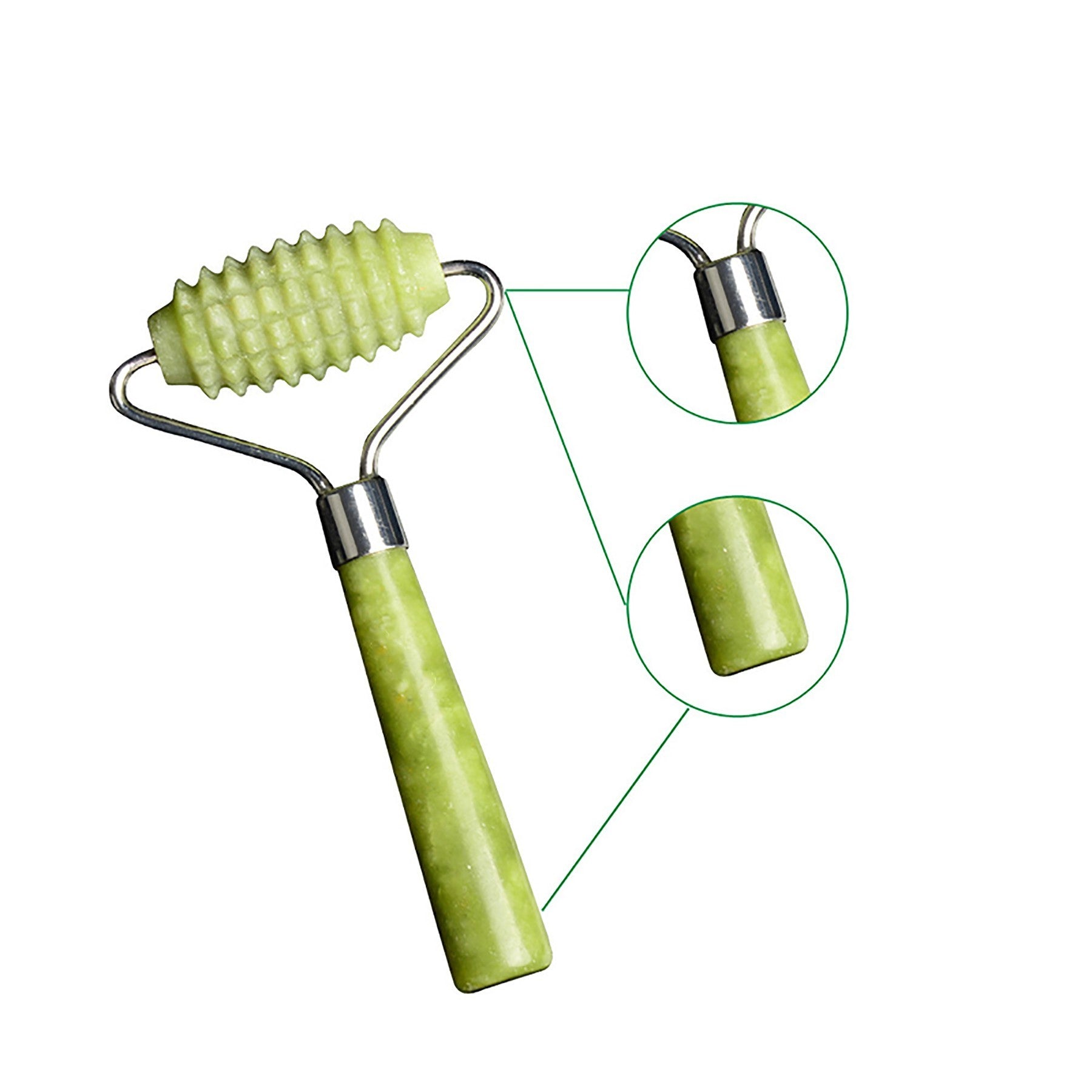 Jade roller eliminates muscle tension, smooths fine lines, reduces dark circles, and improves skin health. Its silent design and compact size make it suitable for use on face, neck, arms, back, or legs. Keeping it in the refrigerator enhances the experience. This trendy skincare product helps with anti-aging, moisturizes the skin, prevents acne, and gives a youthful, flawless appearance while relieving daily fatigue. 6 6/8″ L x 2 3/8″ W