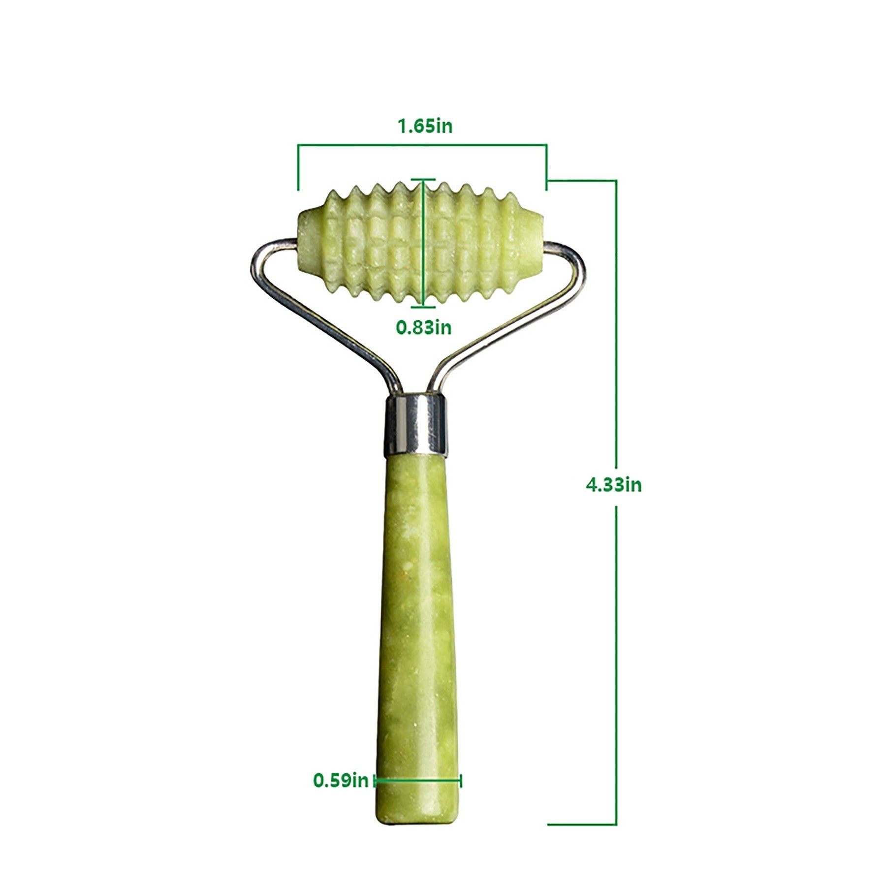 Jade roller reduces muscle tension, smooths fine lines, and improves skin health. It can be used on face, neck, arms, back, or legs. Keep it in the refrigerator for a better experience. This trendy skincare product helps with anti-aging, moisturizes skin, prevents acne, and gives you flawless, younger-looking skin. 4 3/8″ L x 2 1/8″ W x 1 6/8″ H