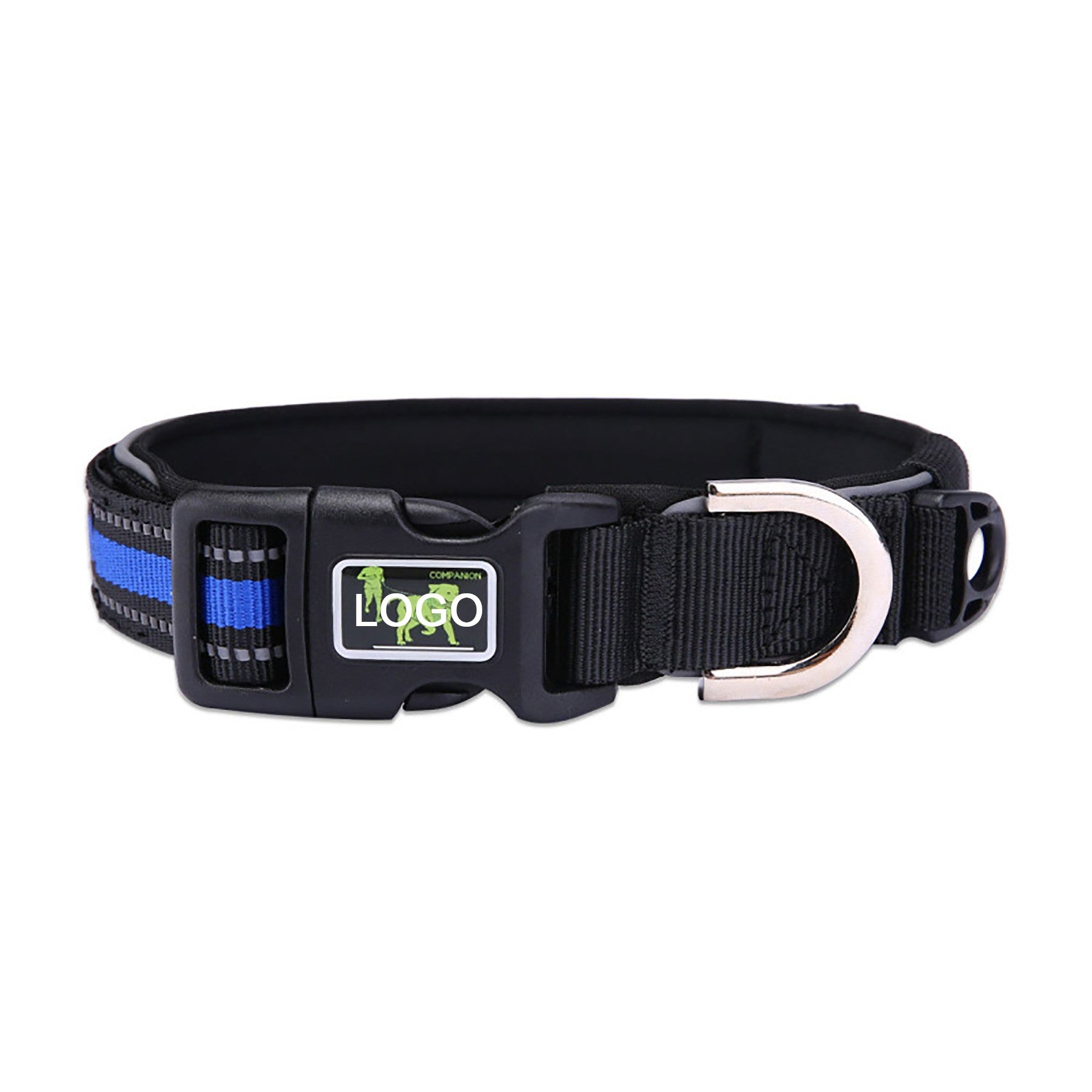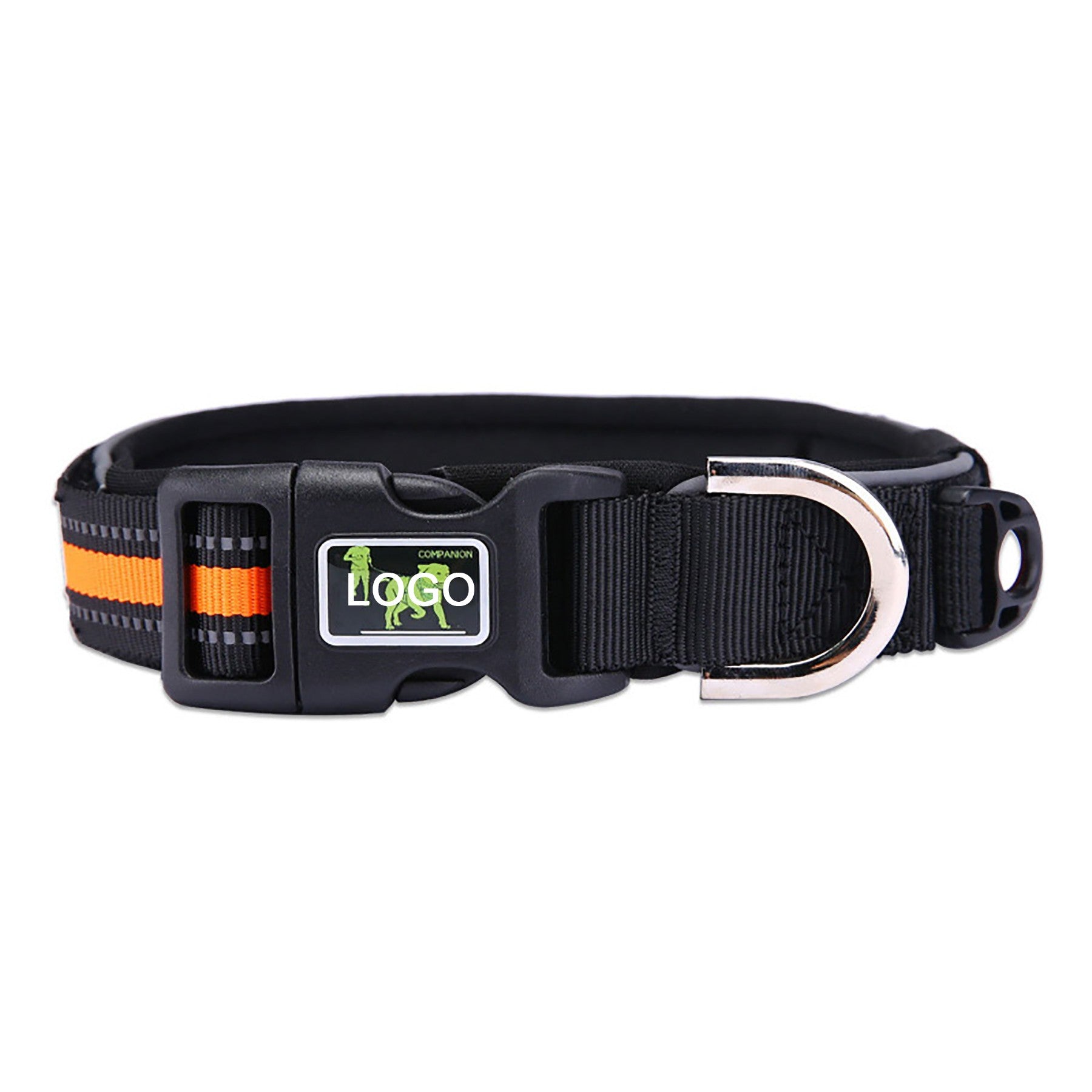 Adjustable nylon collar with full-color dye sublimation. Standard metal D-ring leash attachment, plastic buckle, adjusts easily with tri-glide and loop. Reinforced with box and cross-stitching for years of happy pets. Any company logo, company name can be printed on it. Welcome your customization. 15 6/8″ L x 6/8″ W