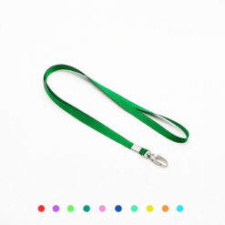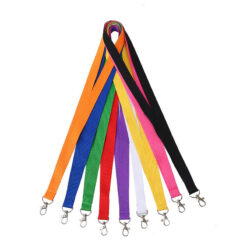 Polyester lanyard with metal bulldog clip. PMS available for product color and imprint. Material: Polyester. 36′ L x 1′ W