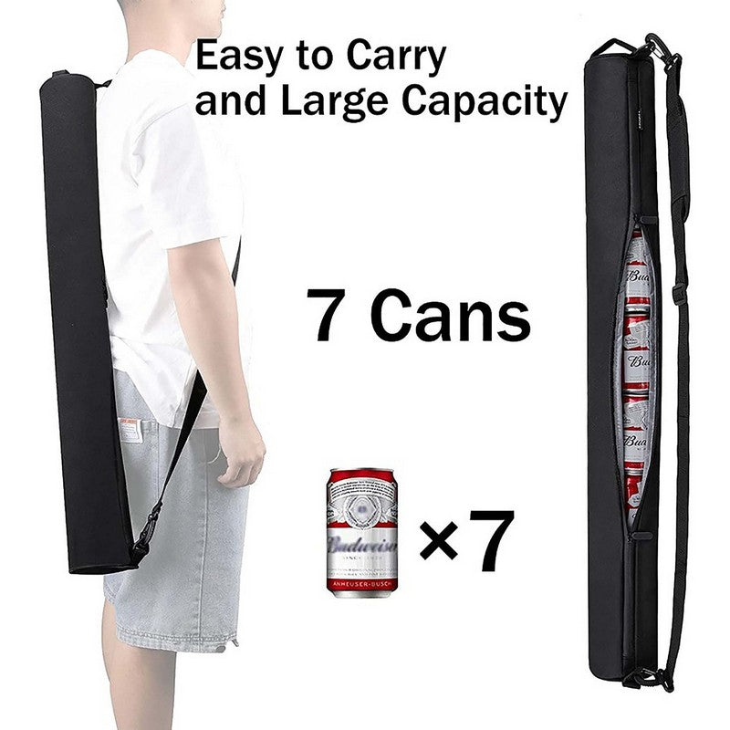 DISCRETELY STORES UP TO 7 CANS IN YOUR GOLF BAG – This thoughtfully designed beer cooler drinking accessory is the ultimate golfing companion. Fits in nearly all golf bag types and styles contains stand bags, cart bags, Sunday bags, and more.It is made of oxford and EPE form,PEVA lining. 35′ L x 3.5′ W x 3.5′ H