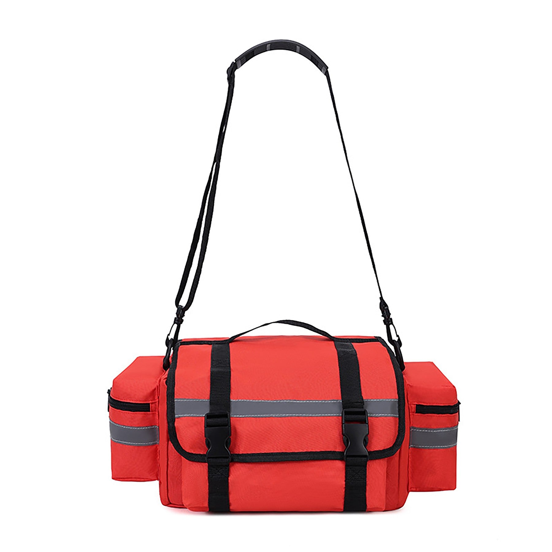 The main compartment of the drug storage bag is equipped with a silky and durable double sliding zipper for quick retrieval of drugs. The cross logo on the front is beautiful and eye-catching, the side pockets are fixed with velcro, and the top handle is easy to carry, making travel convenient. Made of heavy-duty impact resistant oxford cloth material, it can withstand daily use and ensure proper protection of medical supplies. The sturdy design of the first aid bag ensures long-lasting durability and reliability. There is ample internal space with multiple compartments, and the empty first aid kit can be customized with storage space according to individual needs. Easily organize your first aid essentials such as bandages, disinfectants, and medications. 11.42″ L x 7.68″ W x 6.89″ H