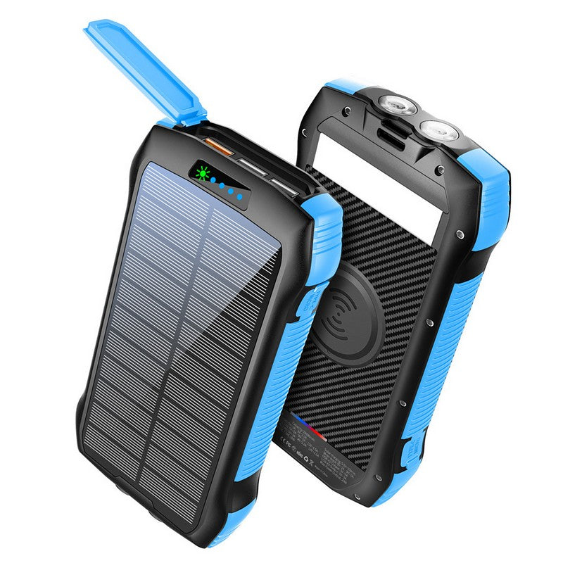 This Solar Power bank has 10000mAH Super huge capacity solar powered charger. The waterproof portable solar charger shell was made Solid and Sturdy Rain-splash & Shockproof, Waterproof, dustproof, Compass. Makes it easy to charge two smartphones simultaneously or a tablet at full speed.2led lights can be used as flashlight with Steady-SOS-Strobe mode. Five pilot indicators show the status of battery charger timely. Green light on when charging by solar, blue light on when USB charging.The Solar Phone charger is ideal choice for hiking, camping trips or other outdoor activities as one of the portable solar chargers. 5.47′ L x 0.79′ W x 2.95′ H