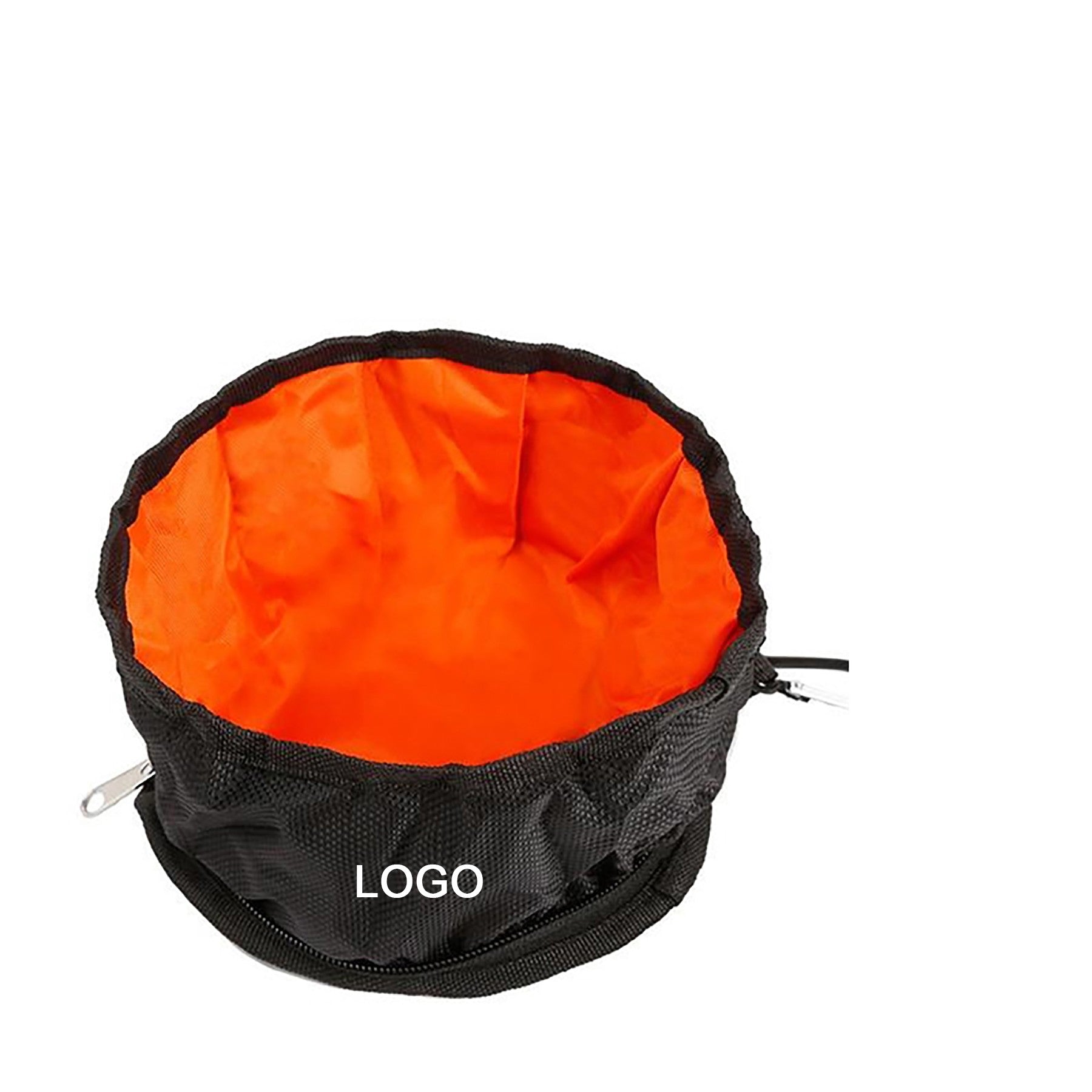 Collapsible folding 600D Polyester bowl for feeding your pet on the go. Bowl comes folded in half with adhesive tab closure and contains PP plastic clip great for attaching to belt loops or leash. Your company logo, company name can be printed on it. Welcome your customization. 7 1/2″ L x 7 1/2″ W x 3 3/4″ H