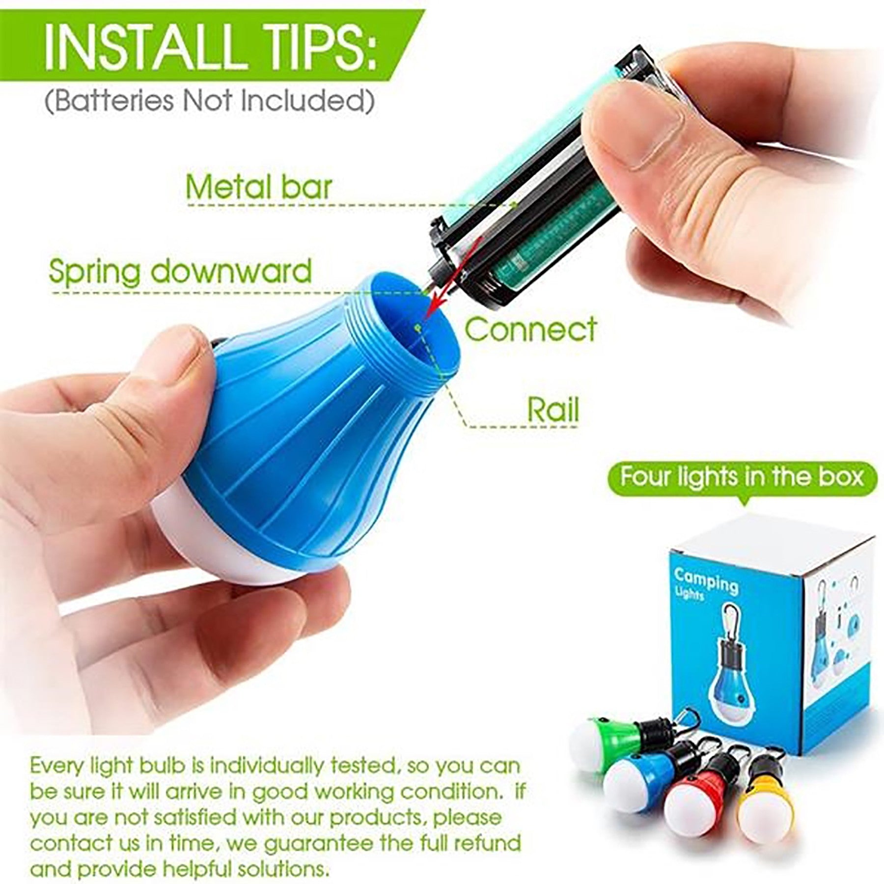 Shed a little light onto your campsite, outdoor party or barbecue with these cool and colorful hanging LED lights. These plastic lamps have a light bulb shape with a wide attached hook that’s easy to hang from a string, cord, tree limb, carabiner clip, table edge and many kind of objects and surfaces. A pushbutton switch activates the bright LED light in three modes. 4.72″ L x 2.08″ W