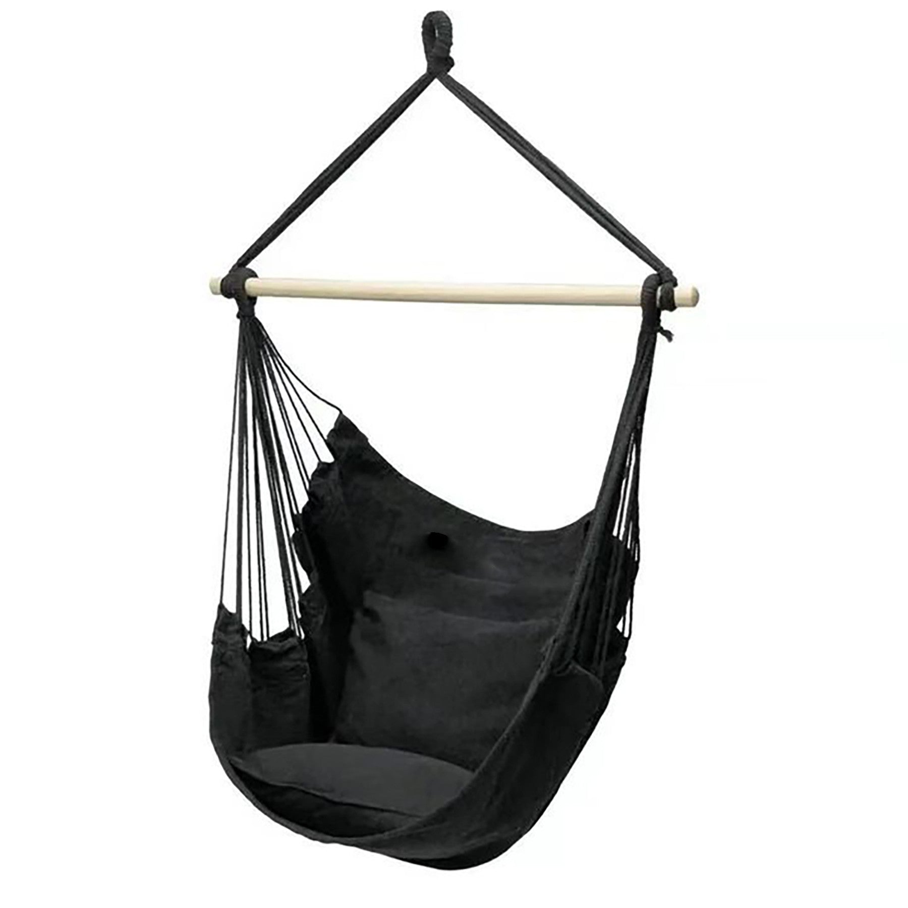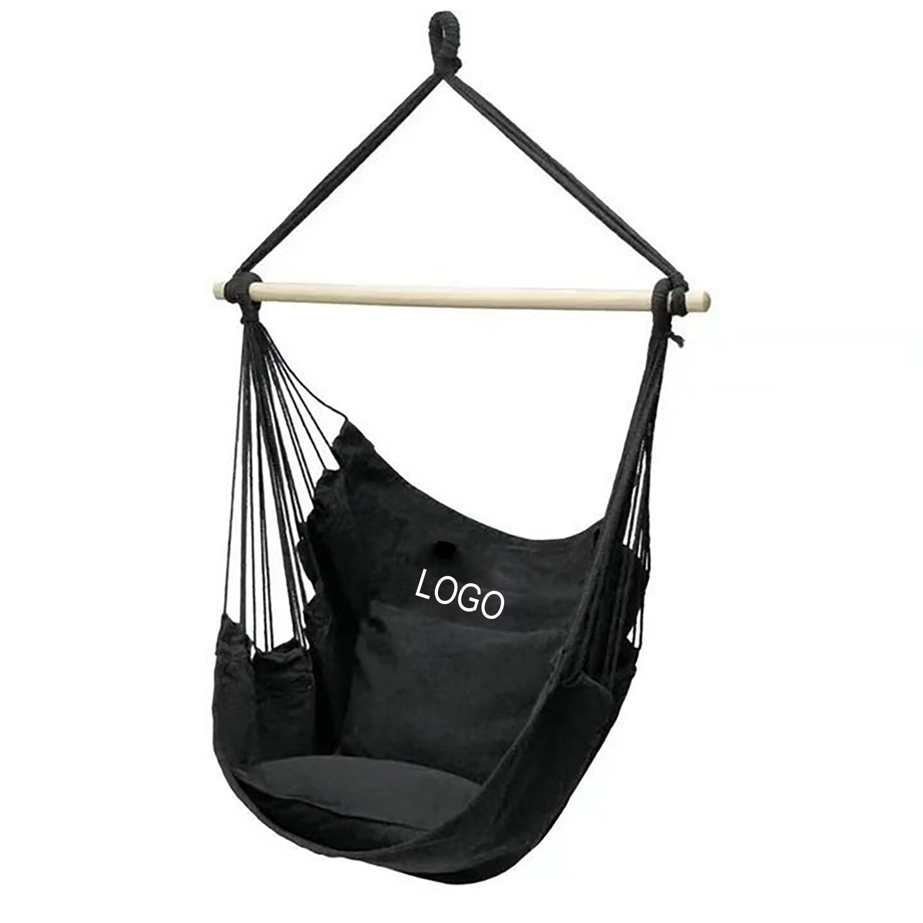 The hammock chair is lightweight yet super firm and comfortable. It provides plenty of space for a large adult to stretch out and relax. You can use it as a standard chair for sitting, relaxing, or reading, and you can also lay back and nap whenever you feel like it. Put the rope through the rod, then tie it together, increase the flexibility and stability of the hanging chair so that the product is more safe and durable. Suitable for outdoor uses such as garden, backyard, local park, camping, hunting, hiking, traveling, etc. 40′ L x 40′ W x 52′ H