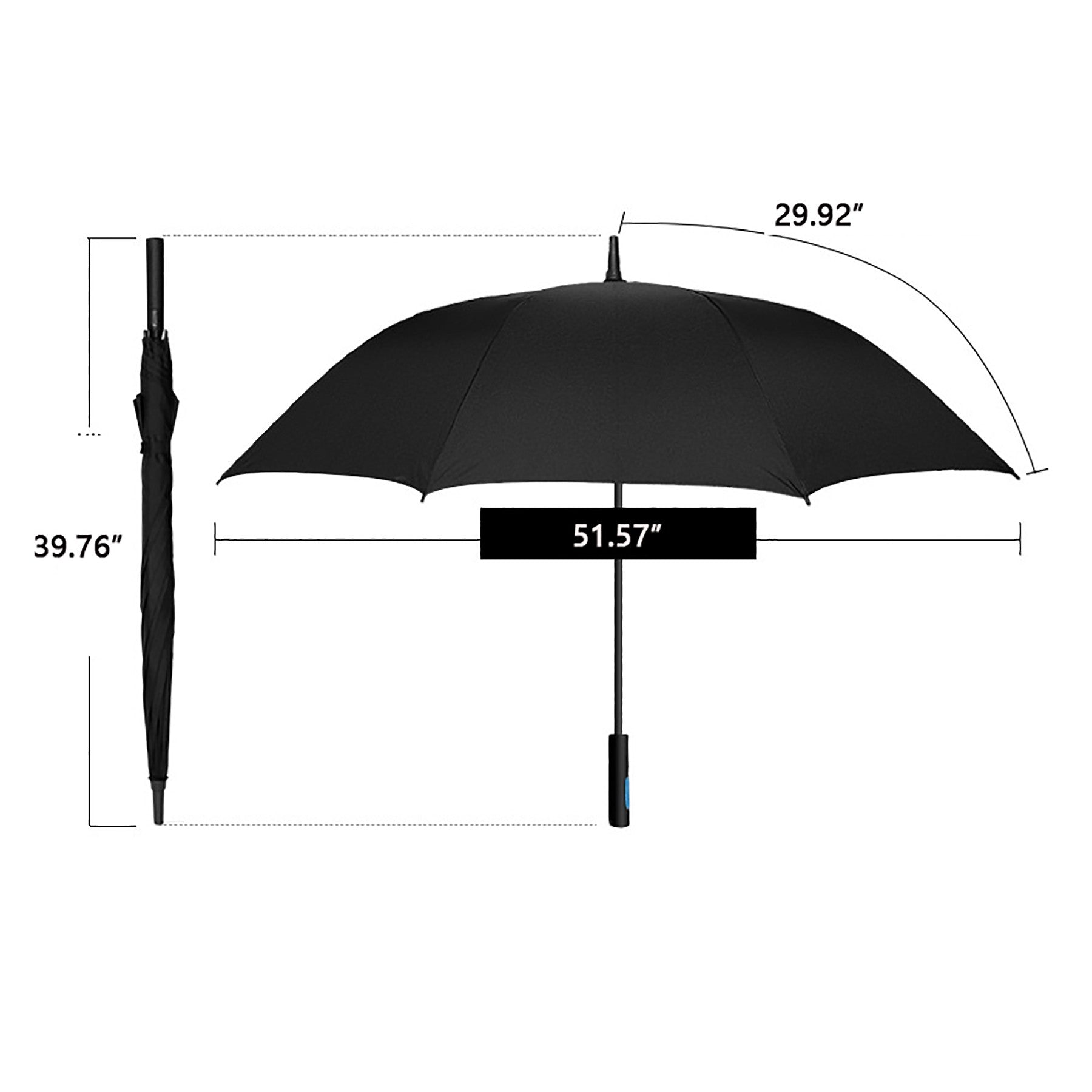 This umbrella is made of PG cloth, making it more waterproof and able to resist heavy rain. The ribs are made of tough glass fibers, providing durability. It has a fast automatic opening function with a button on the handle for easy one-handed operation. Perfect for business trips or outings, you can also customize the logo. 51.57″ L x 39.76″ W