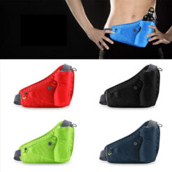 The 45-degree water bottle has a waistband design for a snug fit around the waist and hips. It has a breathable mesh lining and waterproof polyester fabric to keep items dry. It can hold a 750ML water bottle and has a tensioned rope for security during activities like rock climbing. Two sub-bags can store phones, credit cards, and keys. Ideal for outdoor enthusiasts. 13 6/8′ L x 9′ W x 1 1/8′ H