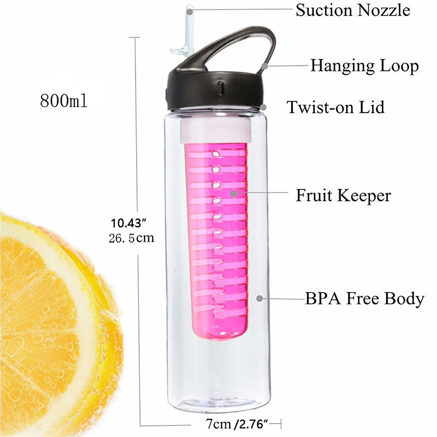 Stay hydrated on the go with the 2-in-1 Water Bottle and Infuser! This 25 oz bottle lets you add fruit for extra flavor, has a flip spout for easy sipping, and fits in cup holders. Made from non-BPA materials for purity. Get yours today for stylish hydration! 2.76″ L x 9.84″ W