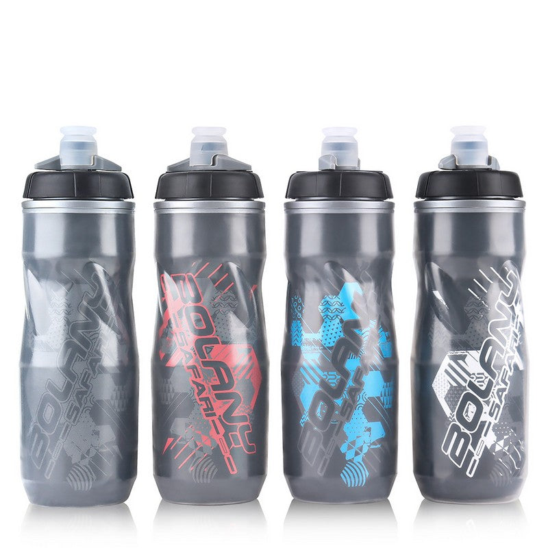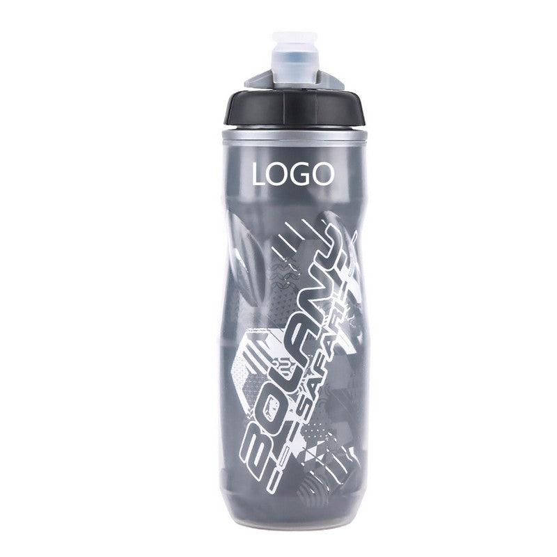 This 20 Oz bicycle sports bottle is made of food-grade PP + PE + silica gel in black and blue colors. Customize patterns or logos. 9″ L x 2.9″ W x 2.9″ H