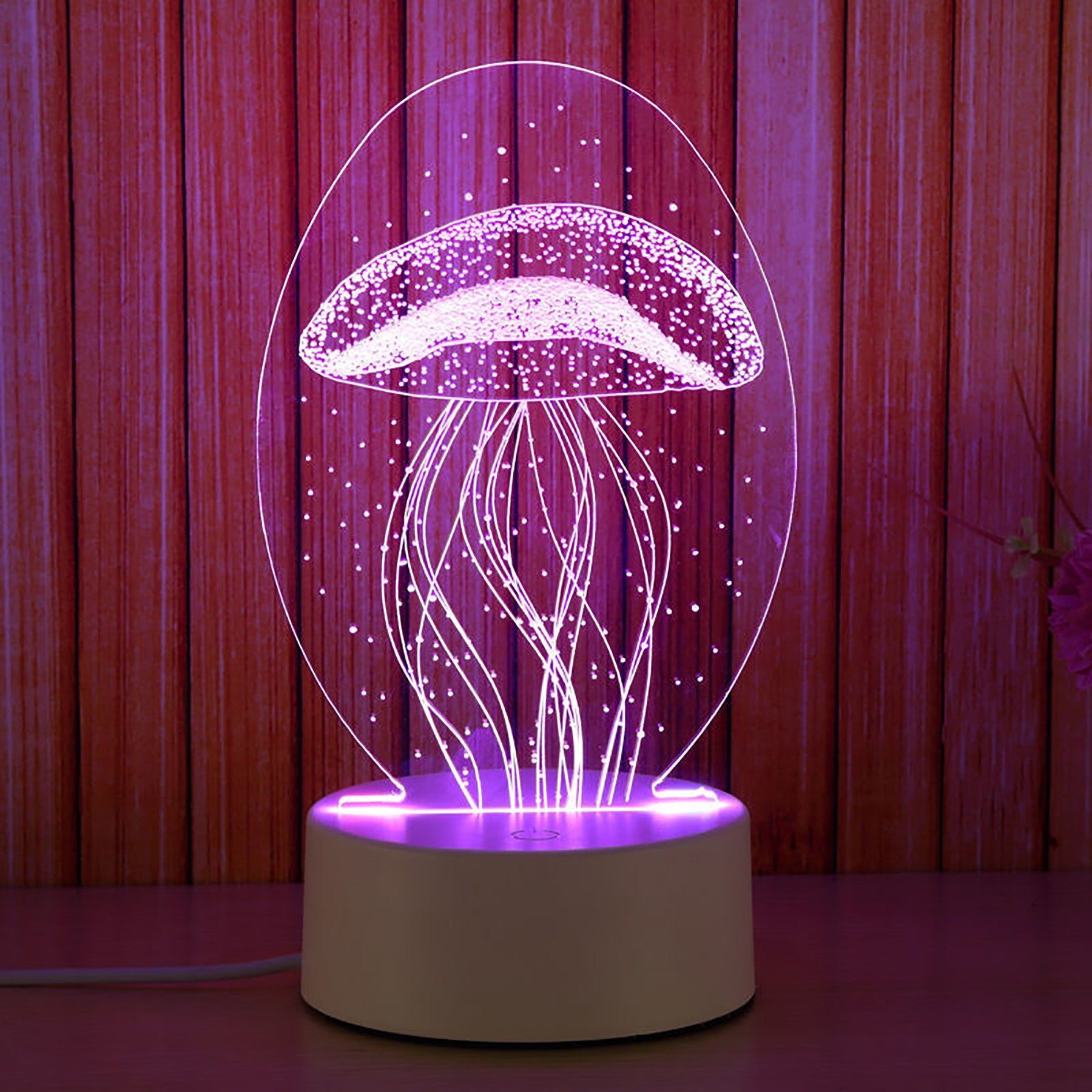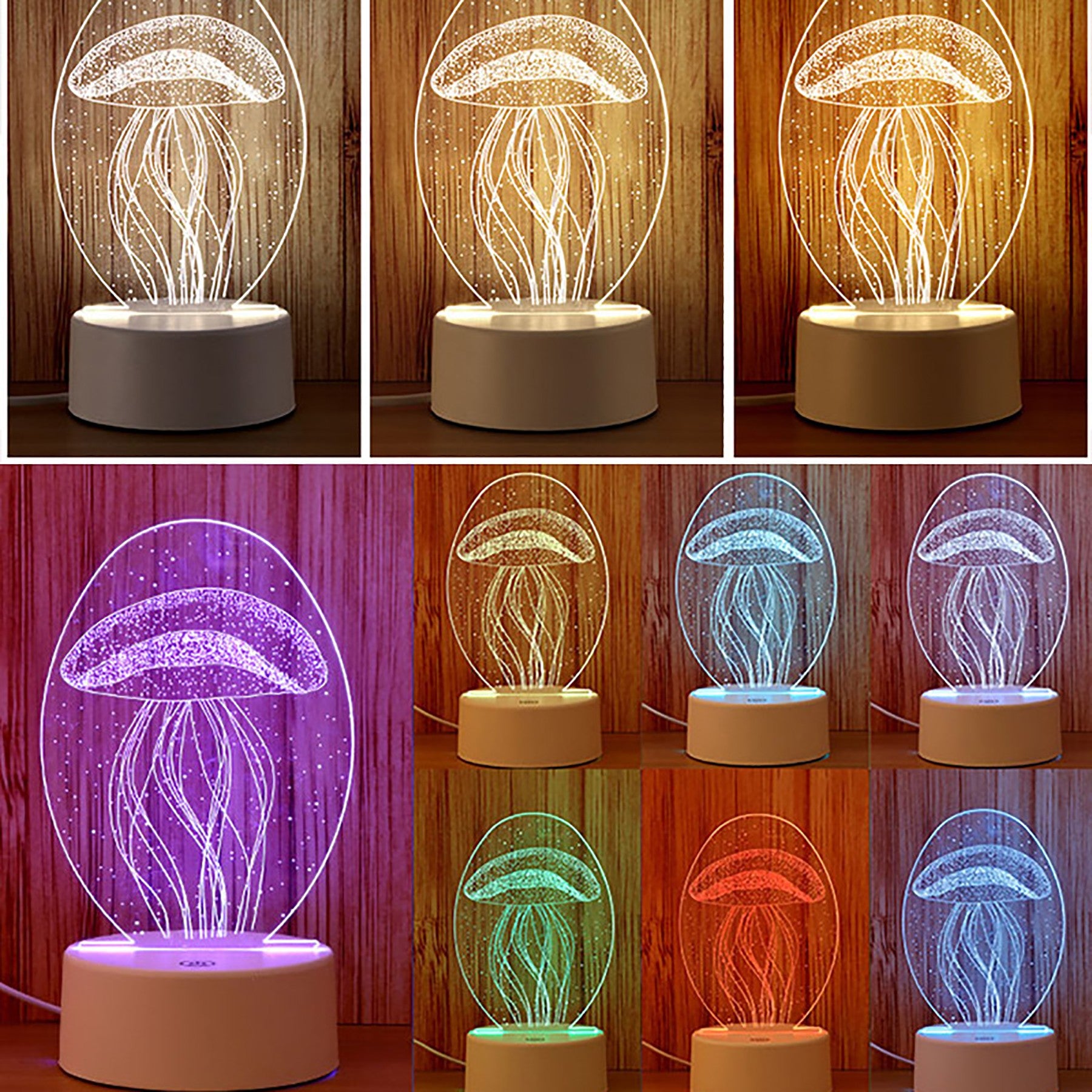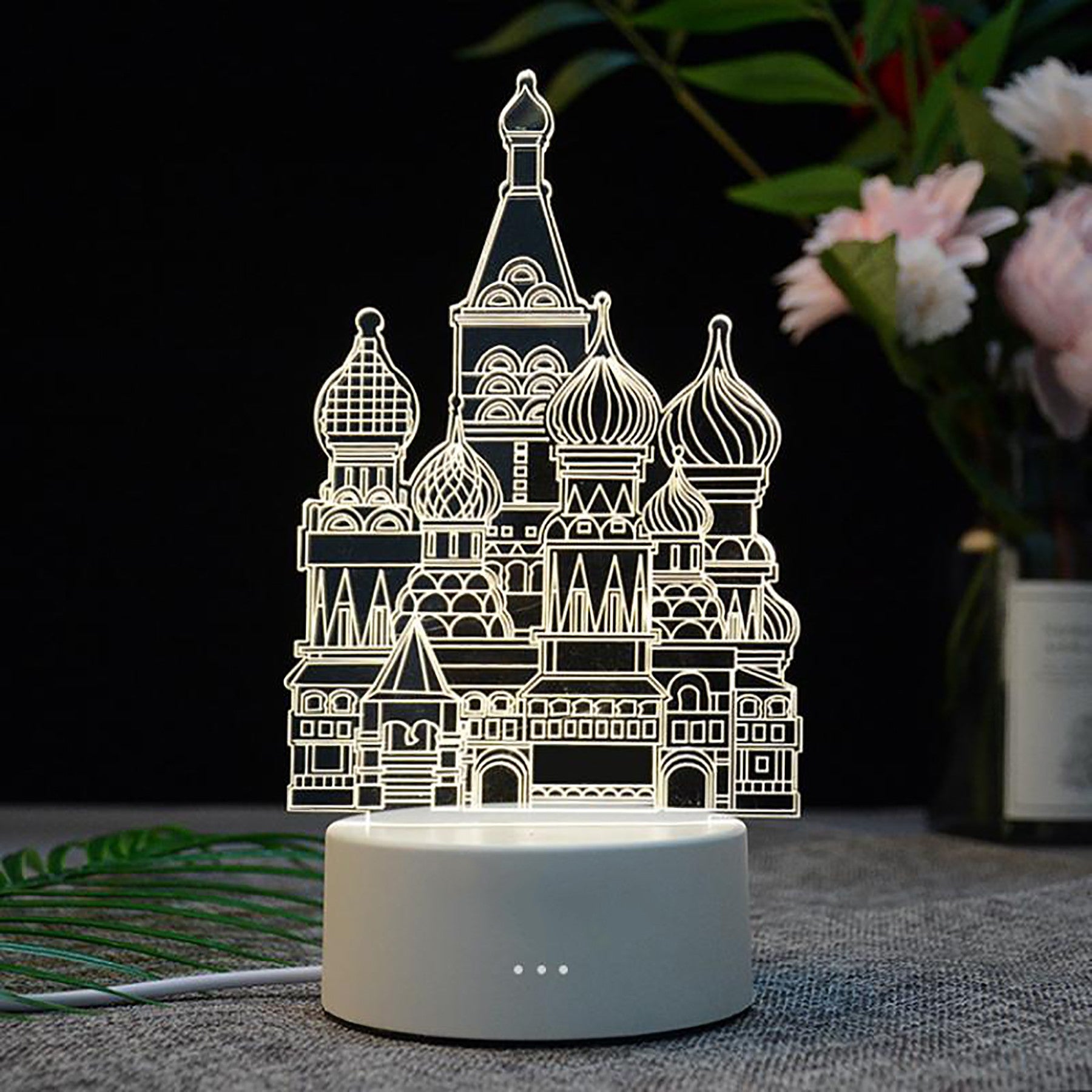The acrylic top light makes a magic 3D illusion, especially in the dark. The vision thrill will be intense! The touch button controls the color change of the illusion light. (with seven colors red, green, blue, yellow, cyan, purple, white, adjustable one color or colorful gradient). They are powered by 3xAA batteries(not included) and a USB cable. This LED lamp is perfect for bedrooms, bars, shops, cafes, restaurants. Custom shapes and logos are available. 3 3/4″ L x 1 5/8″ W