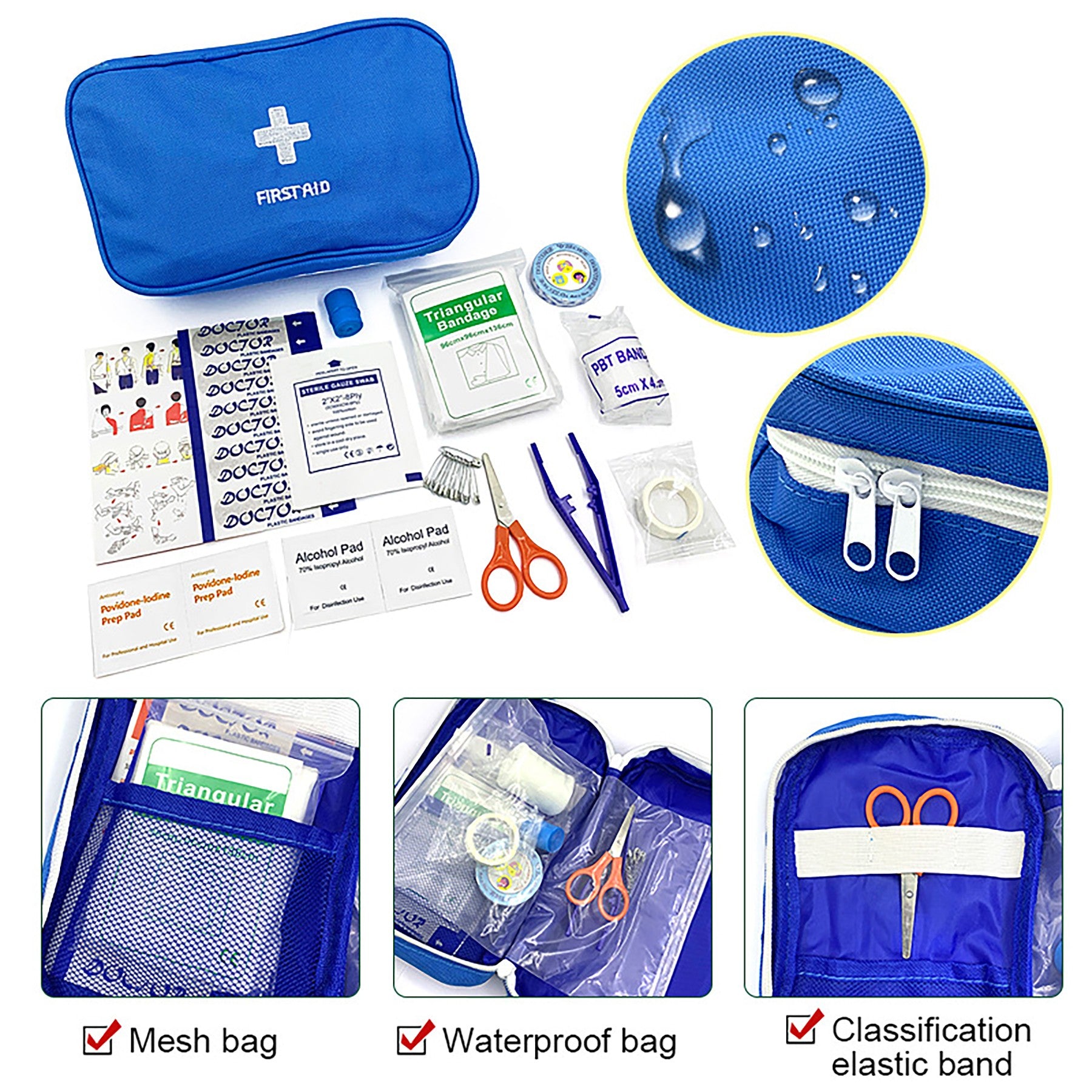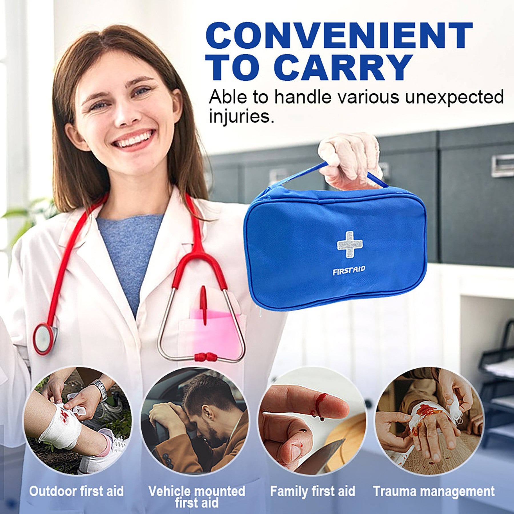 The first aid kit is made of oxford cloth, which is lightweight, splash proof, and wear-resistant. The full zipper design provides excellent protection for the drugs in the first aid bag. This first aid bag can store your medical supplies separately and is classified through multiple pockets. Equipped with handles, organized mesh bags and folders inside, keep your first aid items tidy and orderly. Very suitable for offices, cars, fitness bags, backpacks, and small bags. The best partner for unexpected emergencies or injuries. Facilitating timely and effective treatment for family and friends. 9.45″ L x 5.12″ W x 2.76″ H