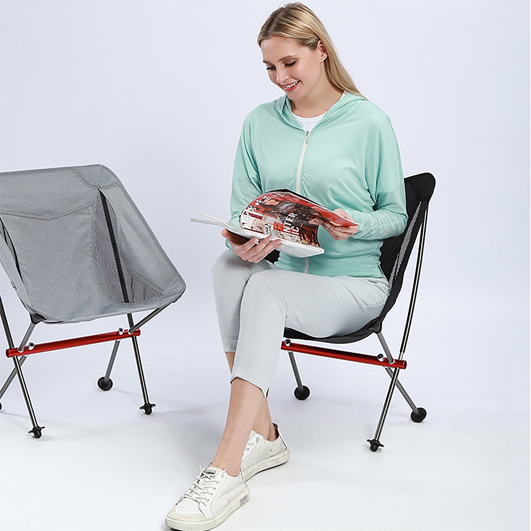 You can put it in your backpack as light as a feather, or just put it in your rv/car. Easy to carry. Breathable seat net gives you a comfortable feeling in the hot season without sinking. 22.05″ L x 23.8″ W x 25.79″ H