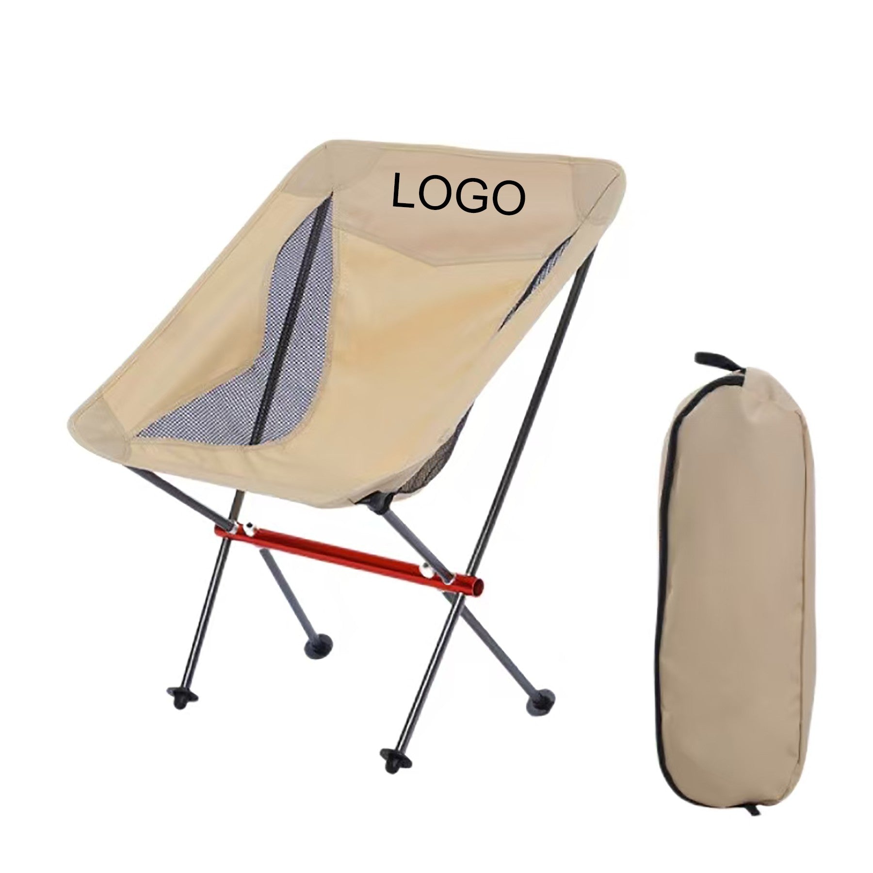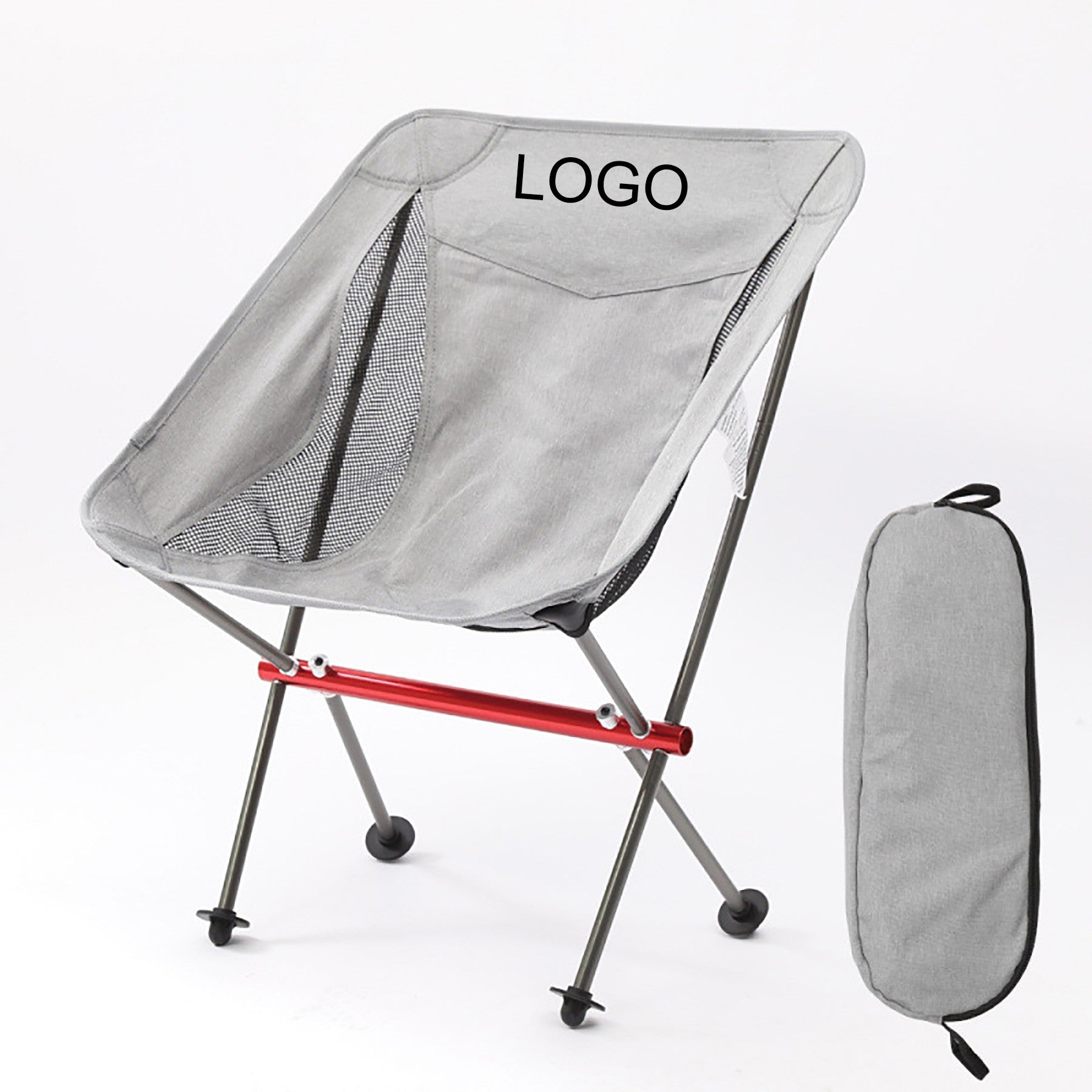 Constructed from tough 600D Oxford fabric with water-repellent treatment and mesh. Breathable, waterproof, and stable with a 7075 aluminum frame, supporting up to 150 kg. Comes with a storage bag for portability. Ideal for camping, hiking, beach days, music festivals, and more. Customizable with your logo. 23.62″ L x 19.68″ W x 27.56″ H
