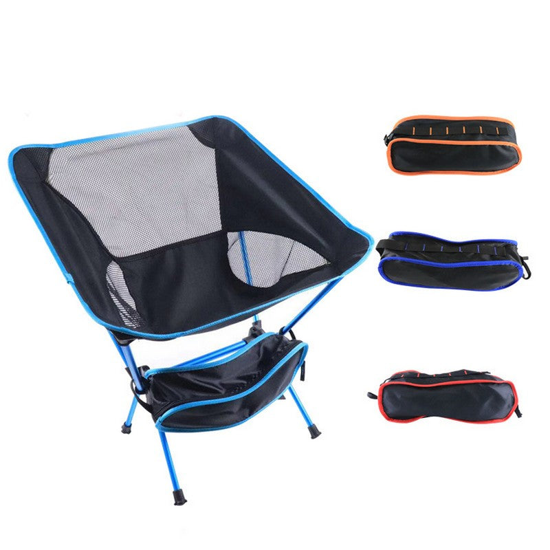 The lightweight folding camping chair is composed of nylon fabric and 7075 aviation aluminum bracket. Nylon fabric is strong enough to withstand people with a weight of up to 350lbs. The folding chair is designed with a wire rod, only need to pull the elastic rope and connect the aluminum bracket. There is a pocket on the side of the outdoor folding chair, you can put your phone in it when you are fishing; the feet of the folding chair are rubberized to prevent sand from entering the bracket. 26.77″ L x 20.47″ W