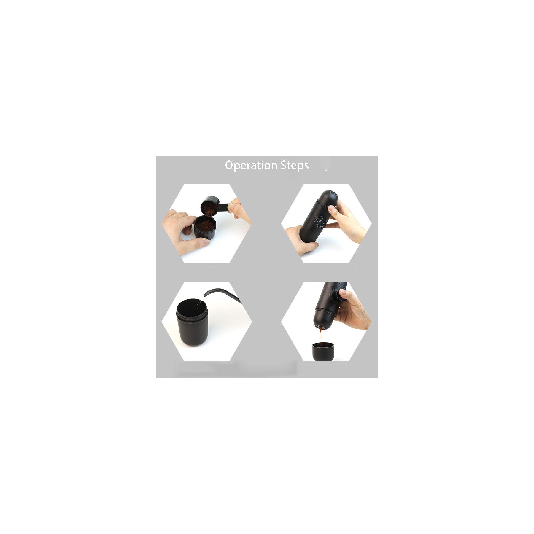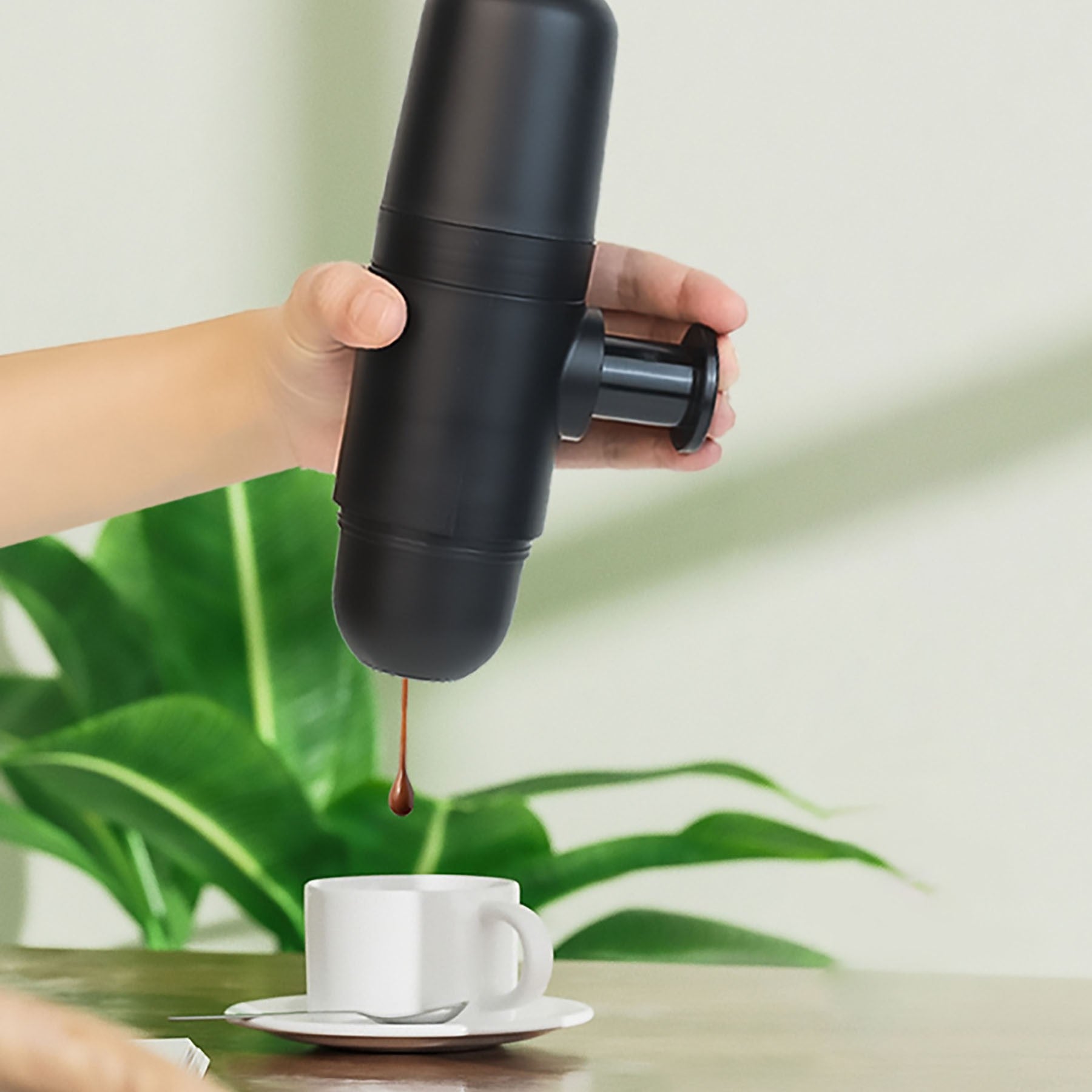 This manual coffee maker allows you to enjoy authentic espresso anywhere. No batteries or electricity required. Just add boiling water and coffee for a variety of flavors. Use the integrated scoop to add ground coffee, fill the water tank, unlock the piston, and pump for rich espresso with crema. Perfect for home, office, or on-the-go. 7.9″ L x 2.37″ W x 2.37″ H