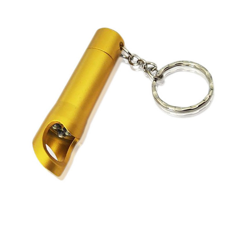 The product set key chain, flashlight, bottle opener as one, portable and practical, beautiful appearance, small and exquisite, convenient to carry around. An ideal handout for trade show, grand openings, car dealerships, safety seminars and more, it can be customized with an imprint of your company name and logo for increased brand exposure. Choking hazard – not for children under three years old. 0.63′ L x 0.63′ W x 2.68′ H