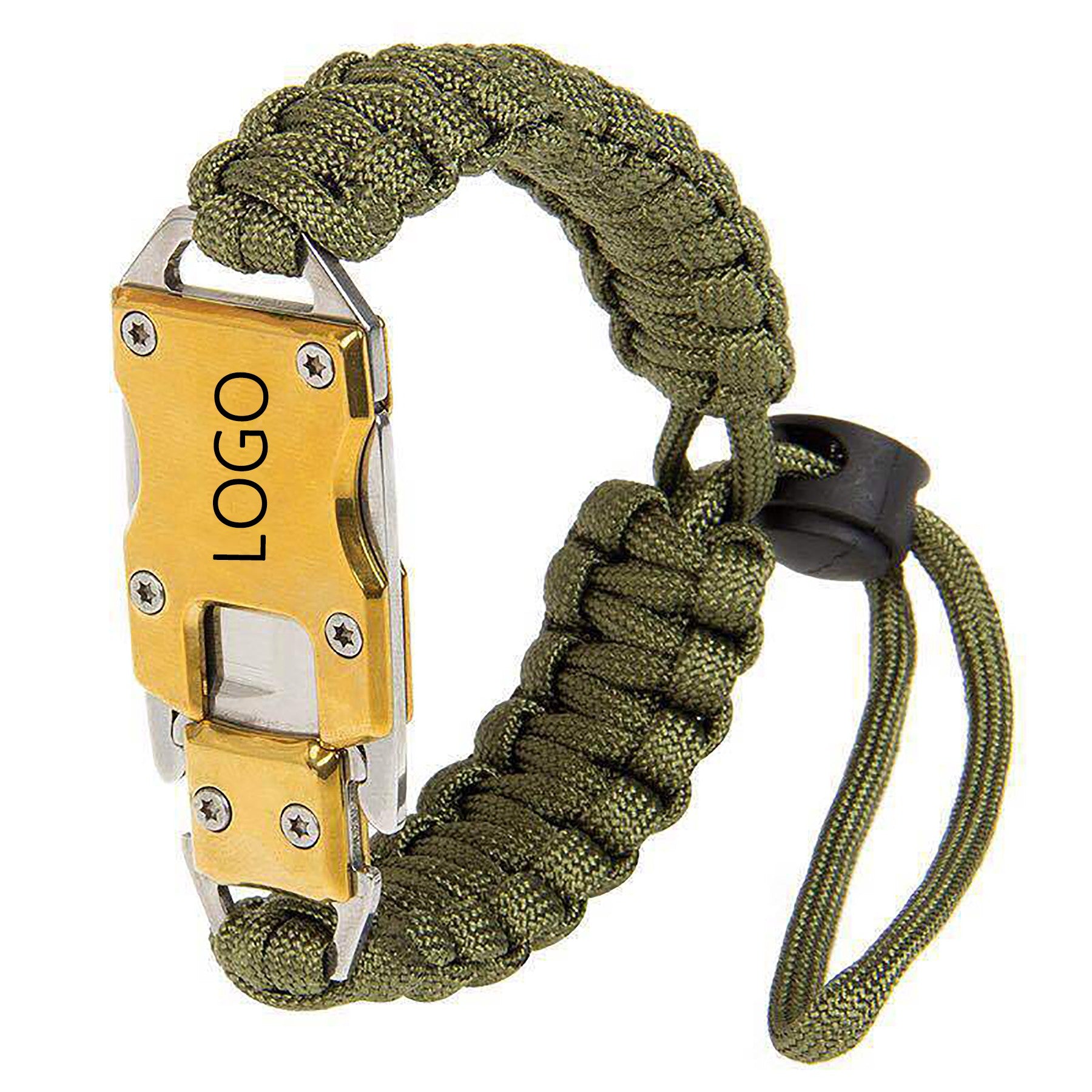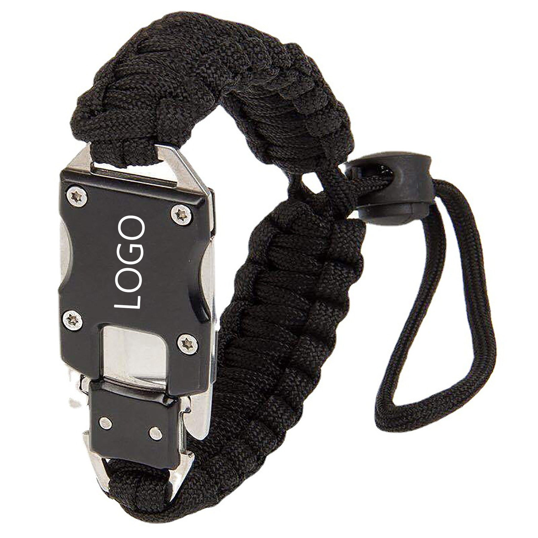 Boost your brand presence with our premium paracord survival bracelet that contains a built-in whistle! Made with high-quality parachute cord, this versatile accessory is perfect for outdoor activities. Customize it with your logo for maximum brand visibility. Don’t wait, order now to make a lasting impression! 9″ L x 7/8″ W