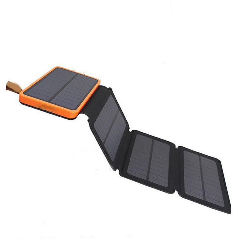 This Solar Power bank has 10000mAH Super huge capacity solar powered charger. The waterproof portable solar charger shell was made Solid and Sturdy Rain-splash & Shockproof, Waterproof, dustproof, Compass. Makes it easy to charge two smartphones simultaneously or a tablet at full speed.2led lights can be used as flashlight with Steady-SOS-Strobe mode. Five pilot indicators show the status of battery charger timely. Green light on when charging by solar, blue light on when USB charging.The Solar Phone charger is ideal choice for hiking, camping trips or other outdoor activities as one of the portable solar chargers. 5.47′ L x 0.79′ W x 2.95′ H