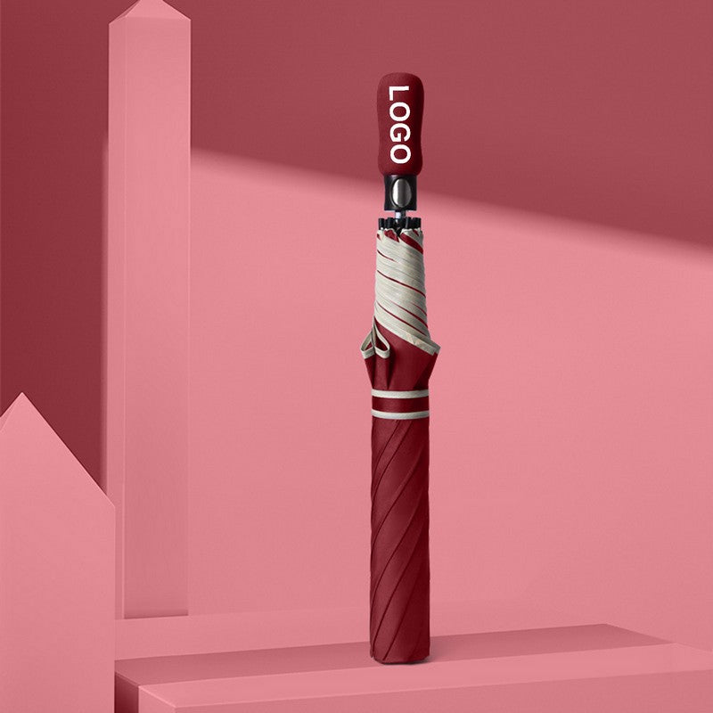 This collapsible umbrella is perfect for two people with its large arc canopy. It is compact, strong, and ideal for travel and golf enthusiasts. The fully automated system allows for easy one-handed operation with the press of a button. It also comes with a storage sleeve. The inside-out design prevents water from dripping, keeping you dry when getting in and out of the car. Ideal for packing in a car, suitcase, or backpack. 20.47″ L x 29.92″ W x 29.92″ H