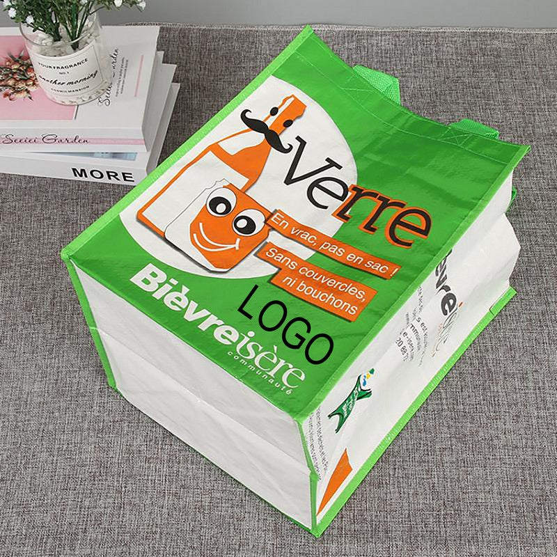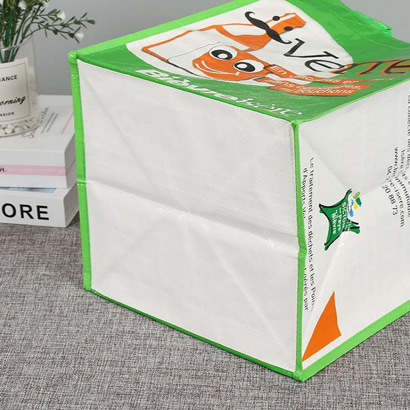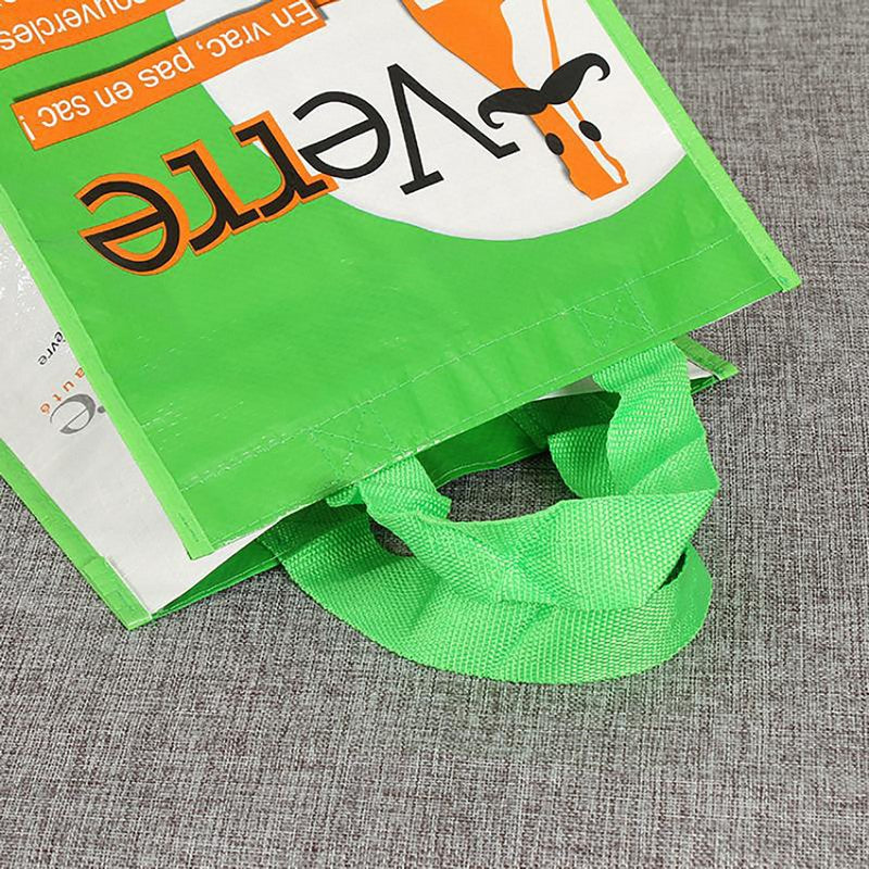 Our full color custom print laminated woven shopper tote is made of 160GSM woven polypropylene, extremely durable and functional, simply wipe it clean as needed. Features with a large compartment and two webbed handles for carrying your favorite essentials insides. Large imprint area makes this laminated recycled shopper a great way to promoting your brand. Perfectly for tradeshows, fundraisers, stores and supermarkets and more. 15′ L x 12′ W x 6′ H
