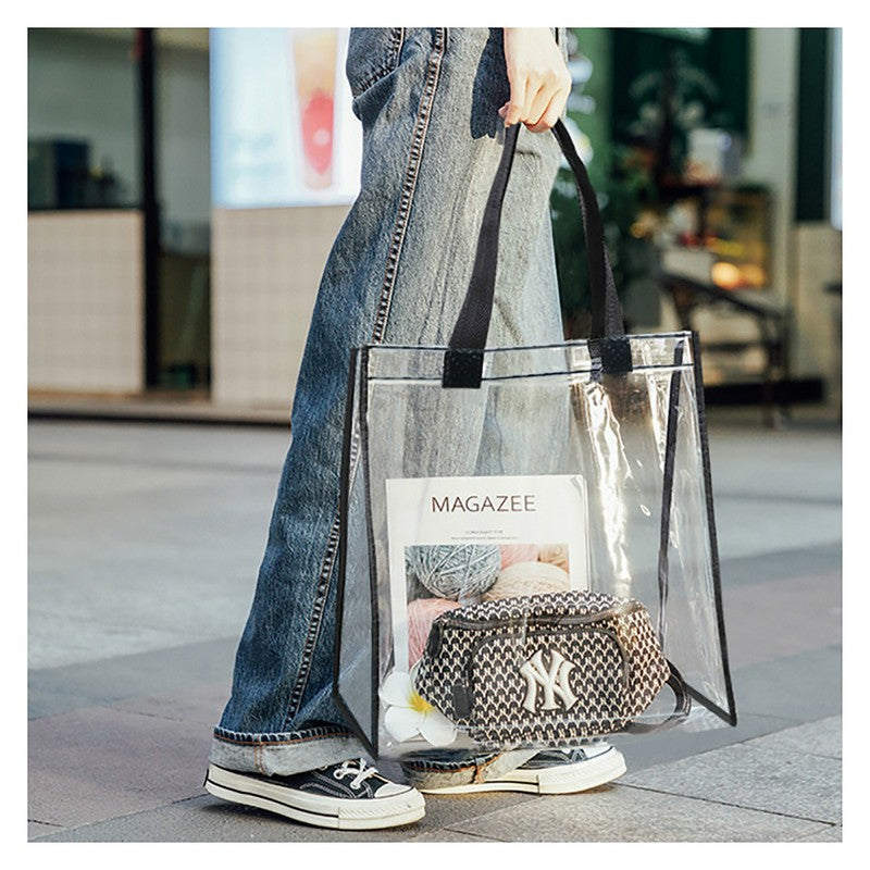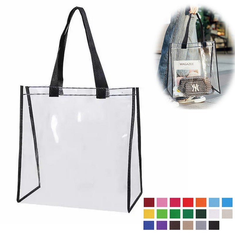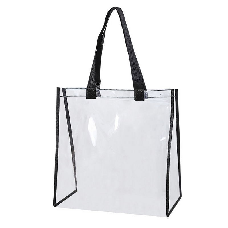 The clear tote bag is made of high-quality PVC material, flexible, strong, light, and waterproof. It has a handle design for convenient carrying. Suitable for various occasions like beach trips, shopping, weddings, and more. Perfect for stadiums, concerts, celebrations, and daily use. 12′ L x 12′ W x 6′ H
