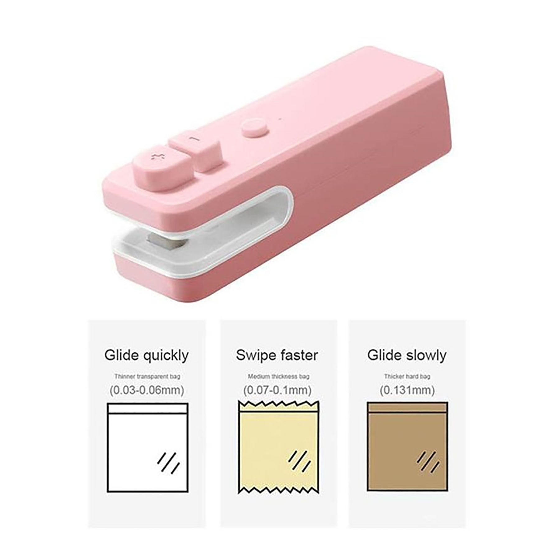 This small heat sealer uses high-quality ABS,upgraded electric heating wire and super heat-resistant ironing belt,which is durable and easier to seal than other bag sealers.It is rechargeable.Unit comes with a USB cable.Please use a 5V output voltage adapter for charging.Our protable food sealer can handle a variety of plastics bags, snack bags,foil bag,chip bags,kraft paper bag and kinds of PVC material.Please don’t worry,it is normal that there may be some smell and smoke in during the using process of sealing heating. 1.38″ L x 1.18″ W x 4.33″ H