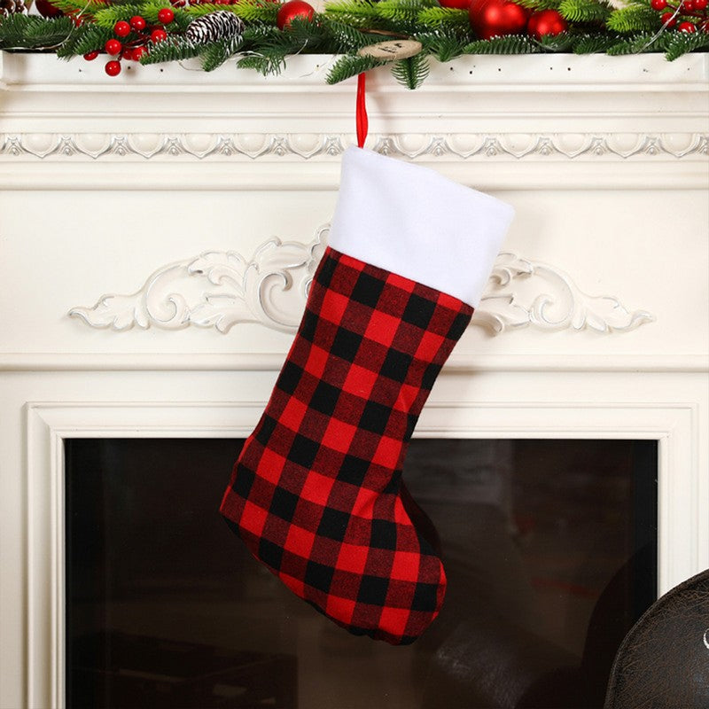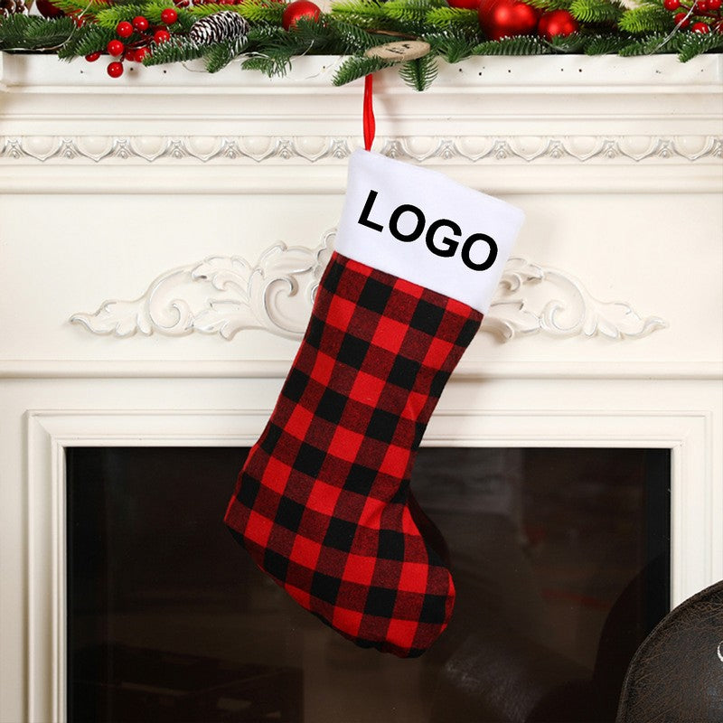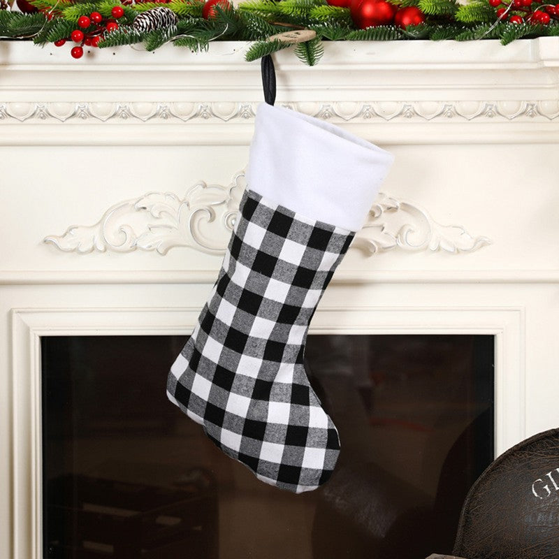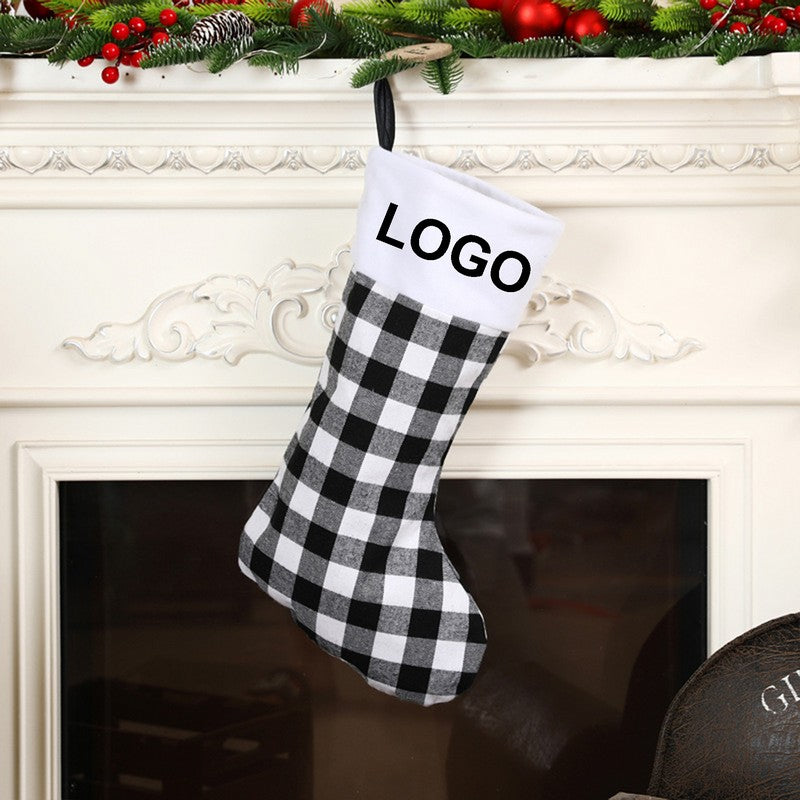 These black and white plaid cotton Christmas stockings are soft, comfortable, and durable with clear printing. They have a large capacity for holding gifts, candy canes, gift cards, chocolates, snacks, and more, showcasing a creative vibe. The red, black, and white design is attractive and popular, creating a romantic atmosphere. Equipped with a rope for easy hanging on Christmas trees, doors, fireplaces, and other locations, they are convenient and eye-catching for guests. 9.45′ L x 17.32′ W x 17.32′ H