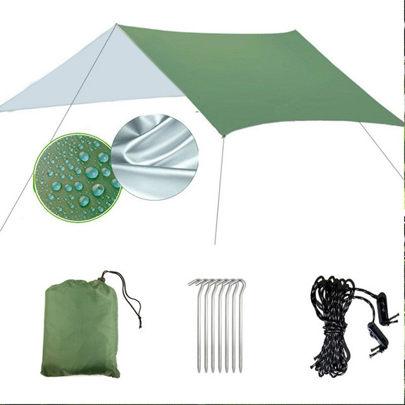 Made of 210T Dacron,the tent tarp offers long-lasting wear with excellent water-shedding capabilities. The rain tarp is versatile and durable, making it an excellent shelter for your hammock or to shelter equipment, clothes, your backcountry kitchen or your dog. 118″ L x 118″ W
