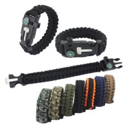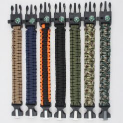 This multi-functional tool contains a compass, flint fire starter, scraper, emergency knife, and whistle for safety. The whistle can reach noise levels of 100db. The inner core can be used as fishing line and sewing thread. The lightweight paracord bracelet is ideal for camping, fishing, hiking, or hunting. The magnesium rod and stainless steel knife are great for starting fires, and the knife is easily removable. 9.84″ L x 1.38″ W