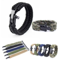 Introducing the Paraclaw Survival Knife – a stylish bracelet that doubles as the ultimate self-defense tool. Made from strong kernmantle nylon rope with a breaking strength of 220 kg, this knife bracelet is ideal for outdoor activities. It contains a flint flare starter, fire scraper, compass, and survival whistle, making it essential for any outdoor emergency. 9.5″ L
