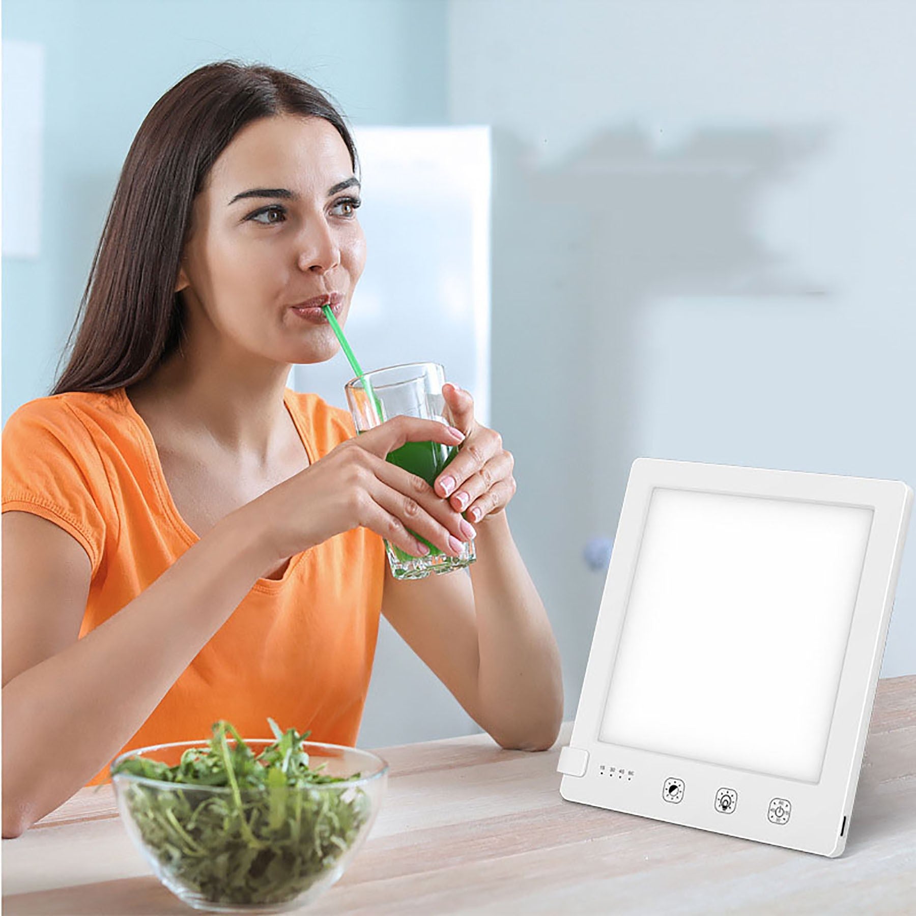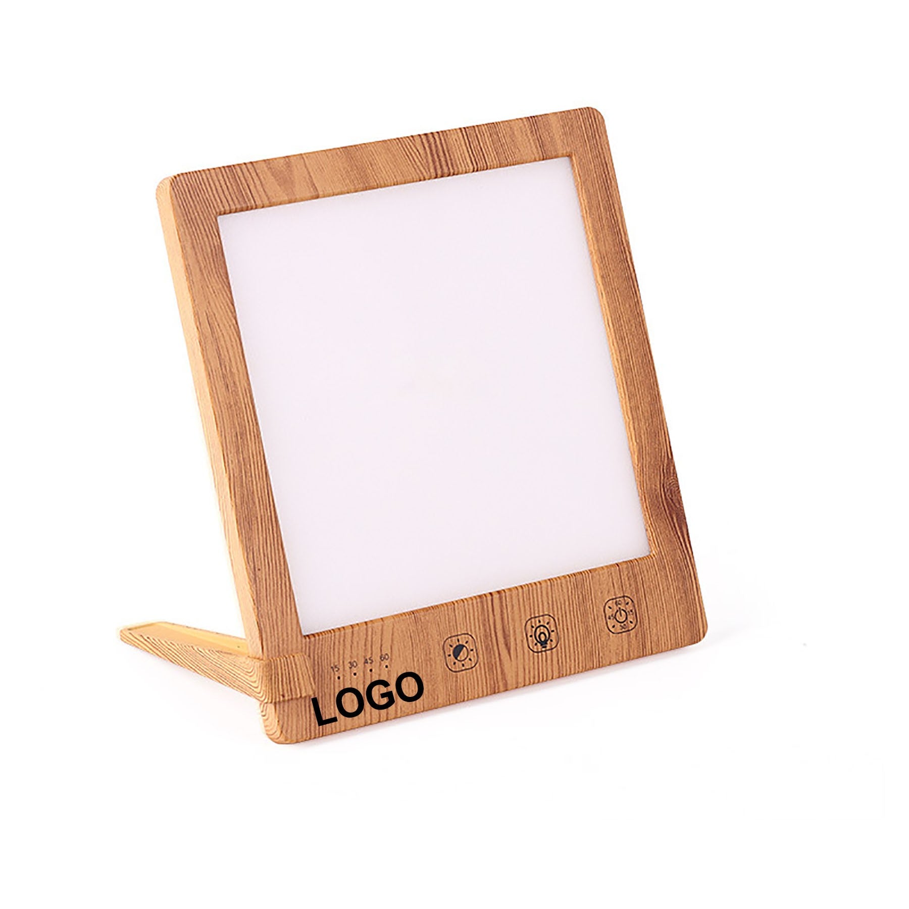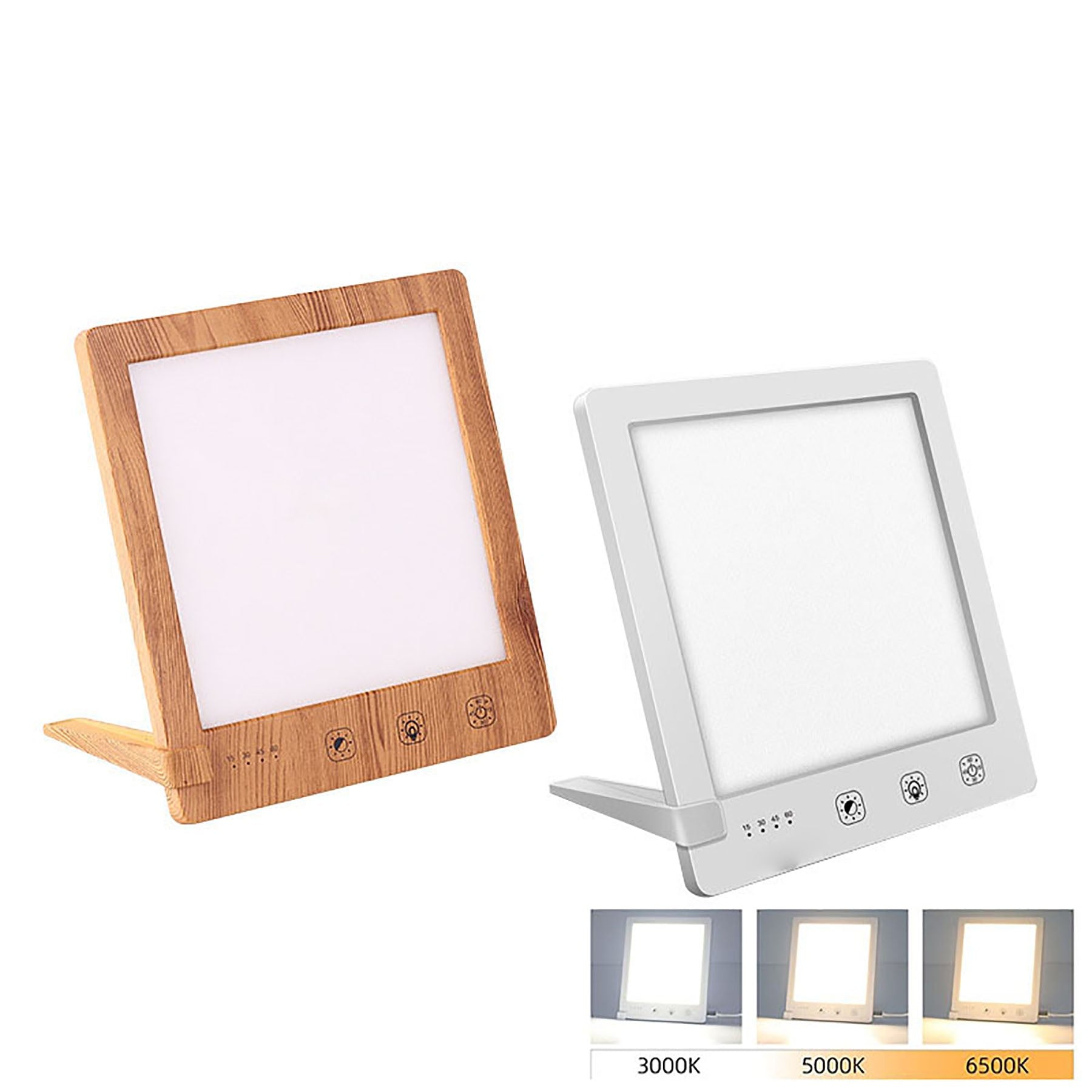 With a 2,000-10,000 lux intensity to bring 3000K/4700/6500K light to provide you with your daily boost of sunshine and help you keep energetic and focused-this light therapy lamp is designed with 3 colors of light (white, natural, and warm). The possibility of multiple settings provides the most choice and maximum comfort for users. Adjustable brightness via the touch of a finger. Comes with a built-in automatic timer from 15-60min in 4 sessions (15/30/45/60min). Compact size with foldable bracket makes the lamp easy to store and carry; it fits next to your laptop, on the kitchen counter, on your cubicle desk, and elsewhere. A custom logo is available. 6 1/4″ L x 5 1/2″ W x 3/8″ H