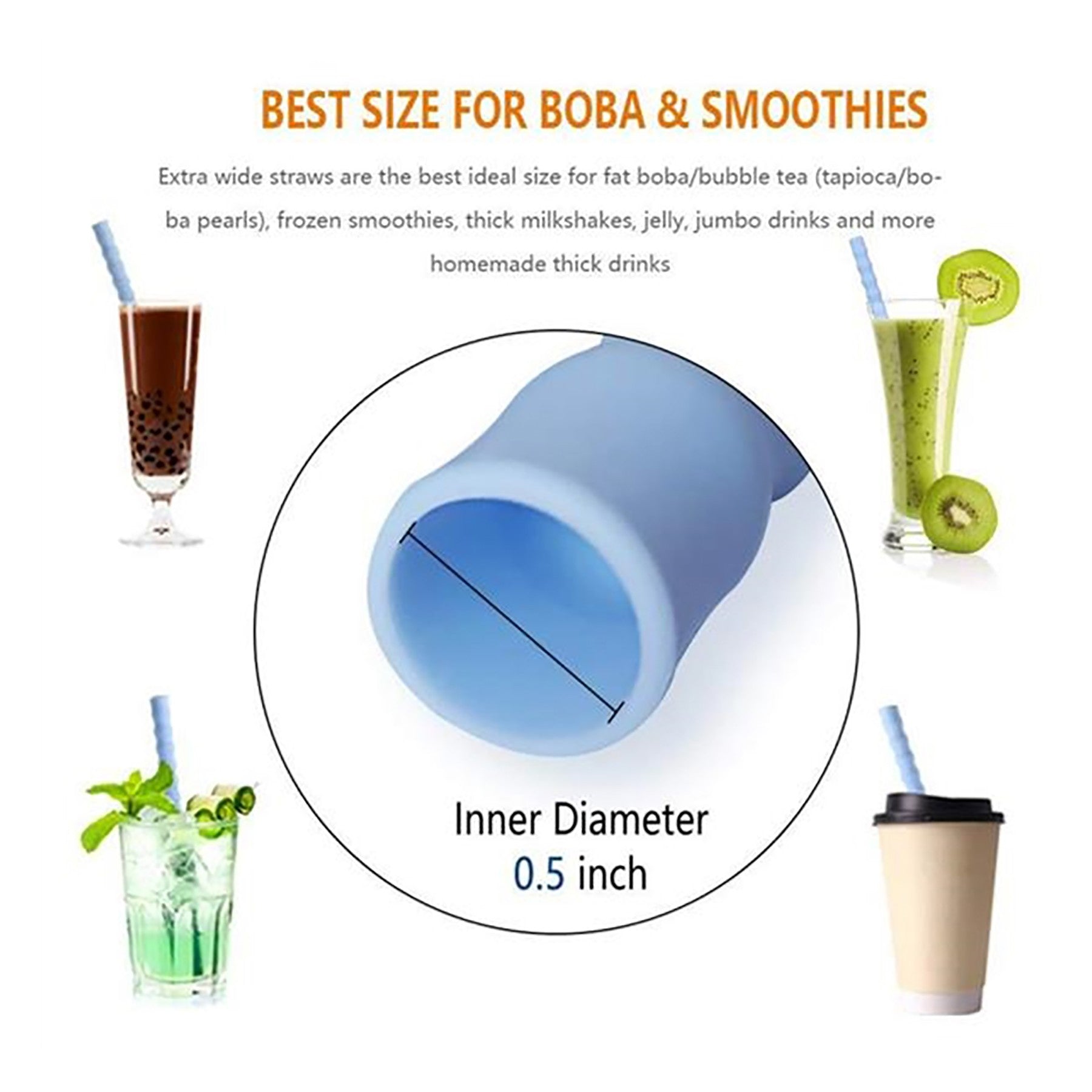 Introducing our premium extra wide silicone straws, made from top-quality, non-BPA silicone. Our odorless straws come with a container and cleaning brush for easy maintenance. The collapsible design allows you to take them on-the-go. Our silicone straws are safe, gentle, and eco-friendly. Upgrade now for a positive impact on the environment without compromising quality or performance. 3 1/2″ L x 1 1/2″ W