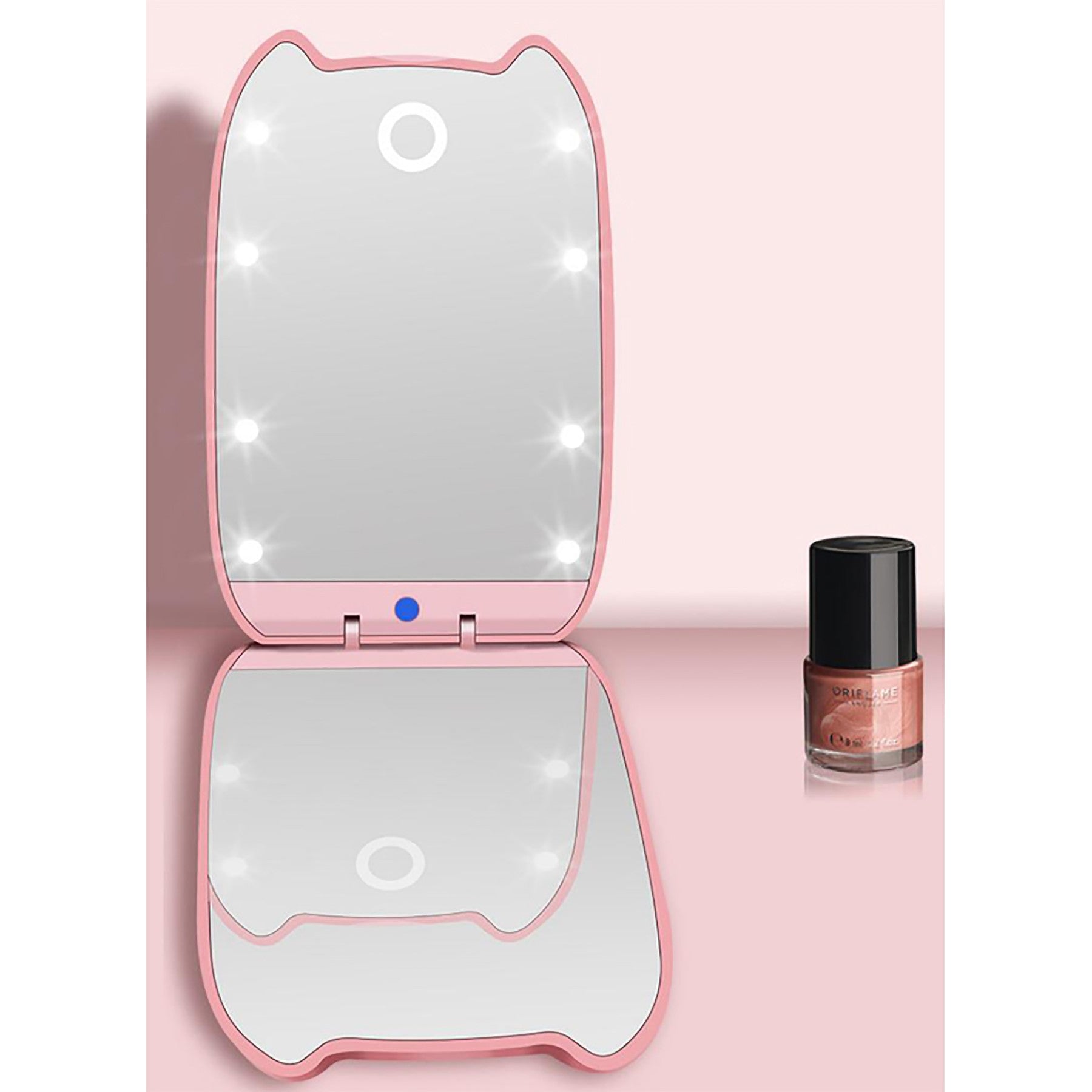 This cosmetic mirror fits perfectly in purses, pockets, and travel bags C ideal for quick touch-U.S anywhere. Rechargeable built-in LED light. Regular mirror for broad view + 2x zoom mirror for precise detail work (eyeliner, brows, etc.). 3.54′ L x 3.54′ W x 0.63′ H