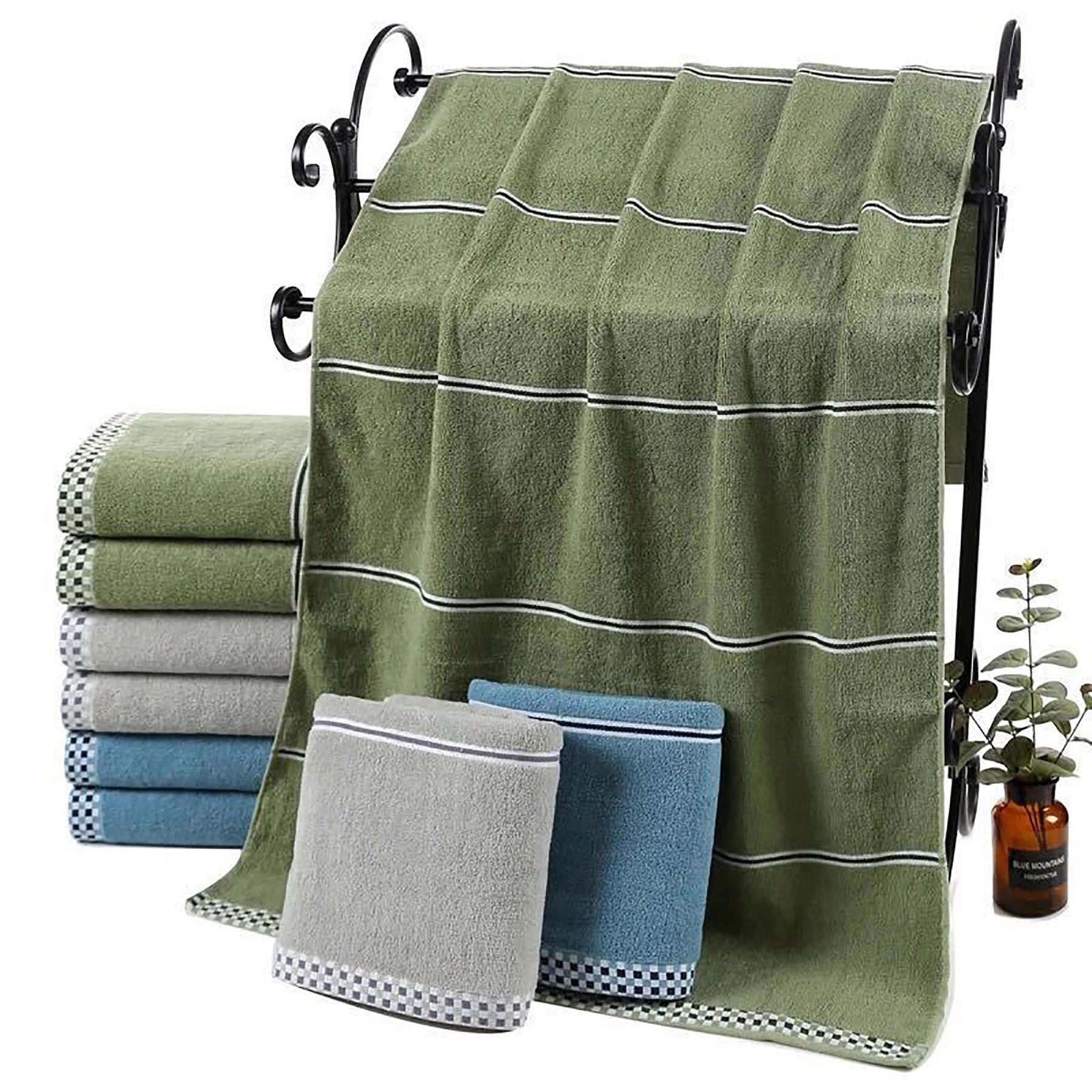 These towels are made of cotton, which makes them extremely absorbent, soft, fluffy and warm. The hems of the towels are double-stitched to ensure their long life. The towels are made of Pure Cotton, which is famous to get softer with each wash. 27.56′ L x 55.11′ W