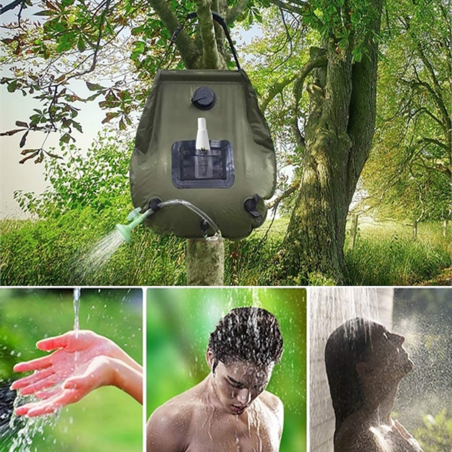 Introducing the Portable Heating Camping Shower Bag – a must-have for outdoor adventures! This 20L/5 Gallon bag has a removable hose, on-off switchable shower head, and is solar-powered for warm showers on-the-go. Just place in the sun for quick heating. Stay fresh outdoors with this convenient shower bag! Ideal for camping, beach trips, and hiking. 18.5″ L x 19.7″ W x 2″ H