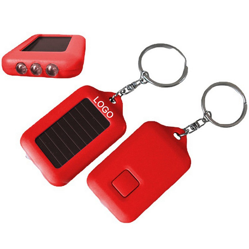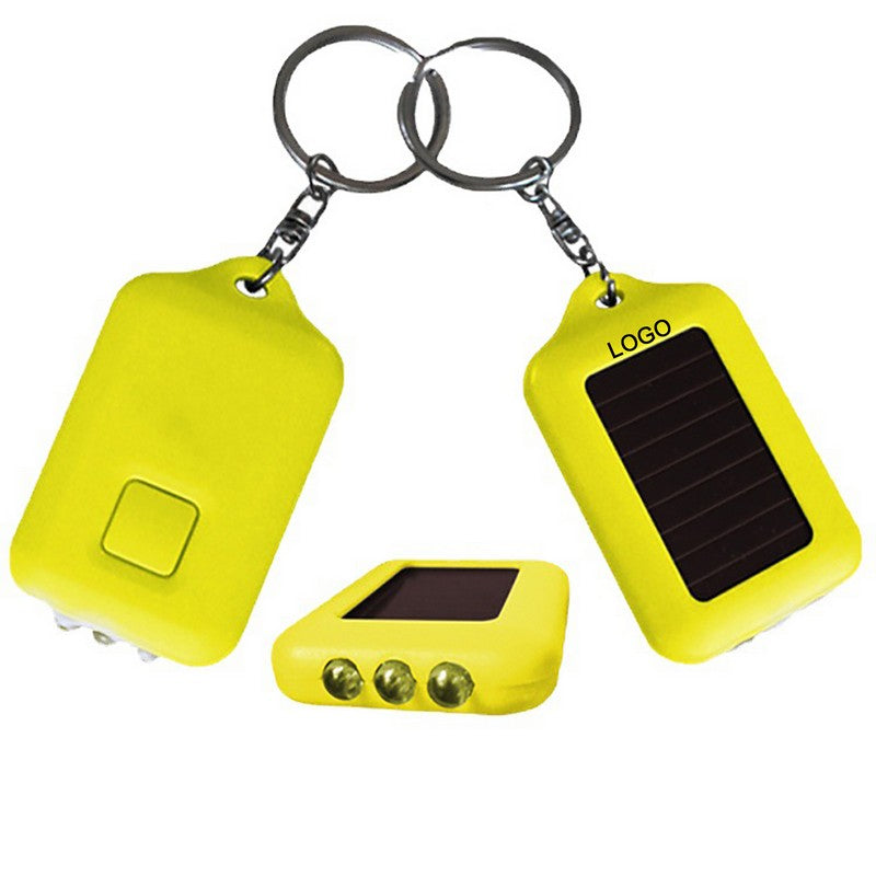 Solar-powered flashlight keychain with no batteries needed. Efficient and convenient, it can absorb power from fluorescent lamps. Features 3 bright LED lights for excellent light condensation. Ideal for printing logos and messages, making it a great gift. 2 1/3′ L x 1 1/3′ W x 2/5′ H